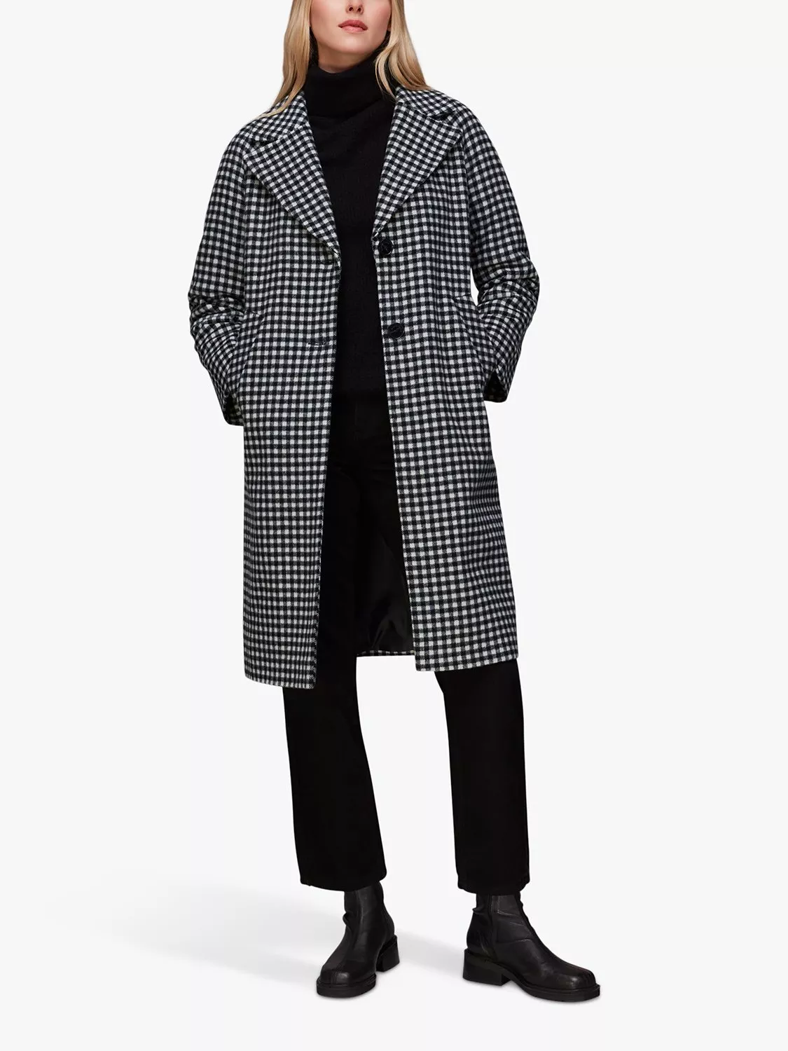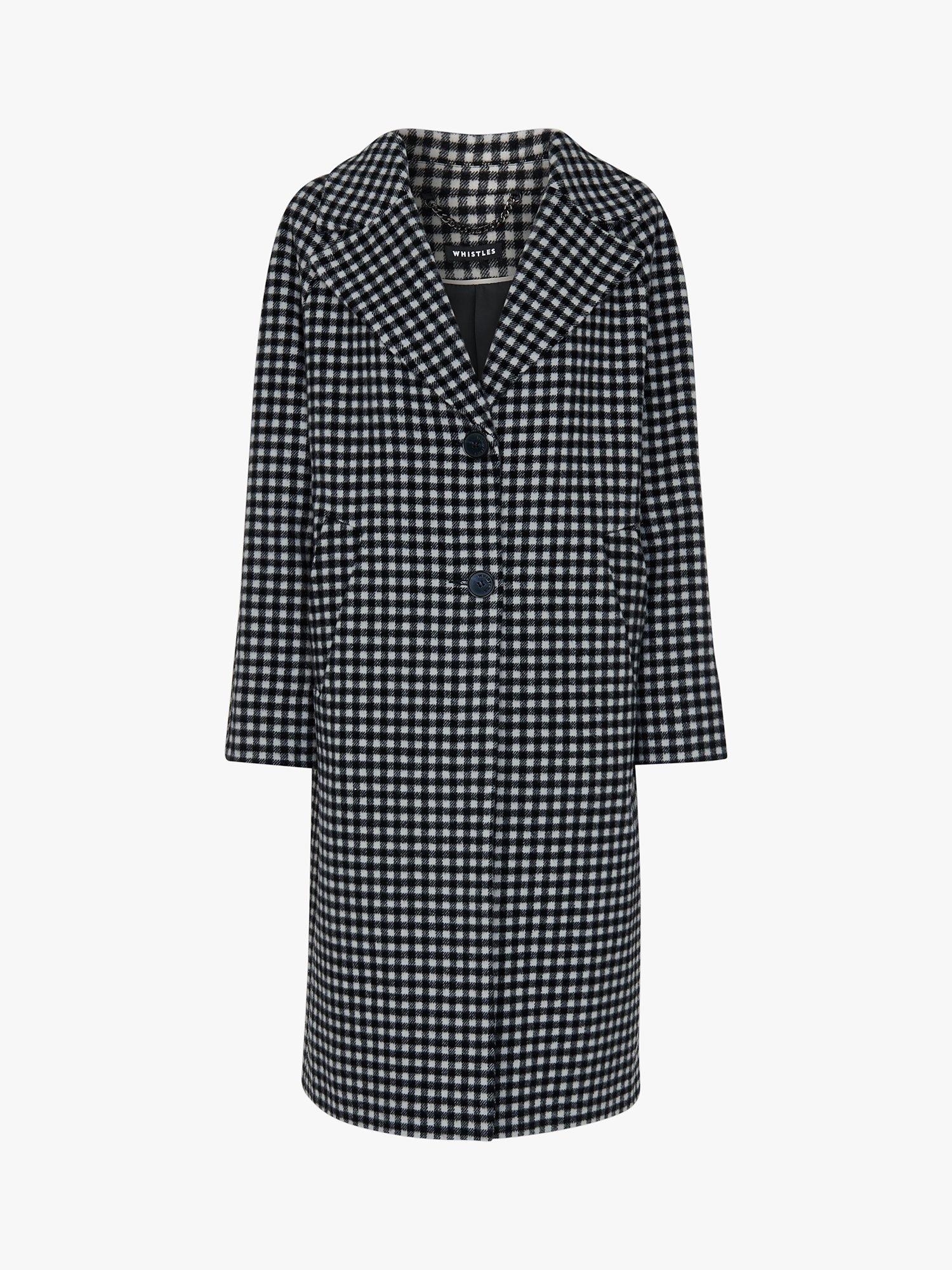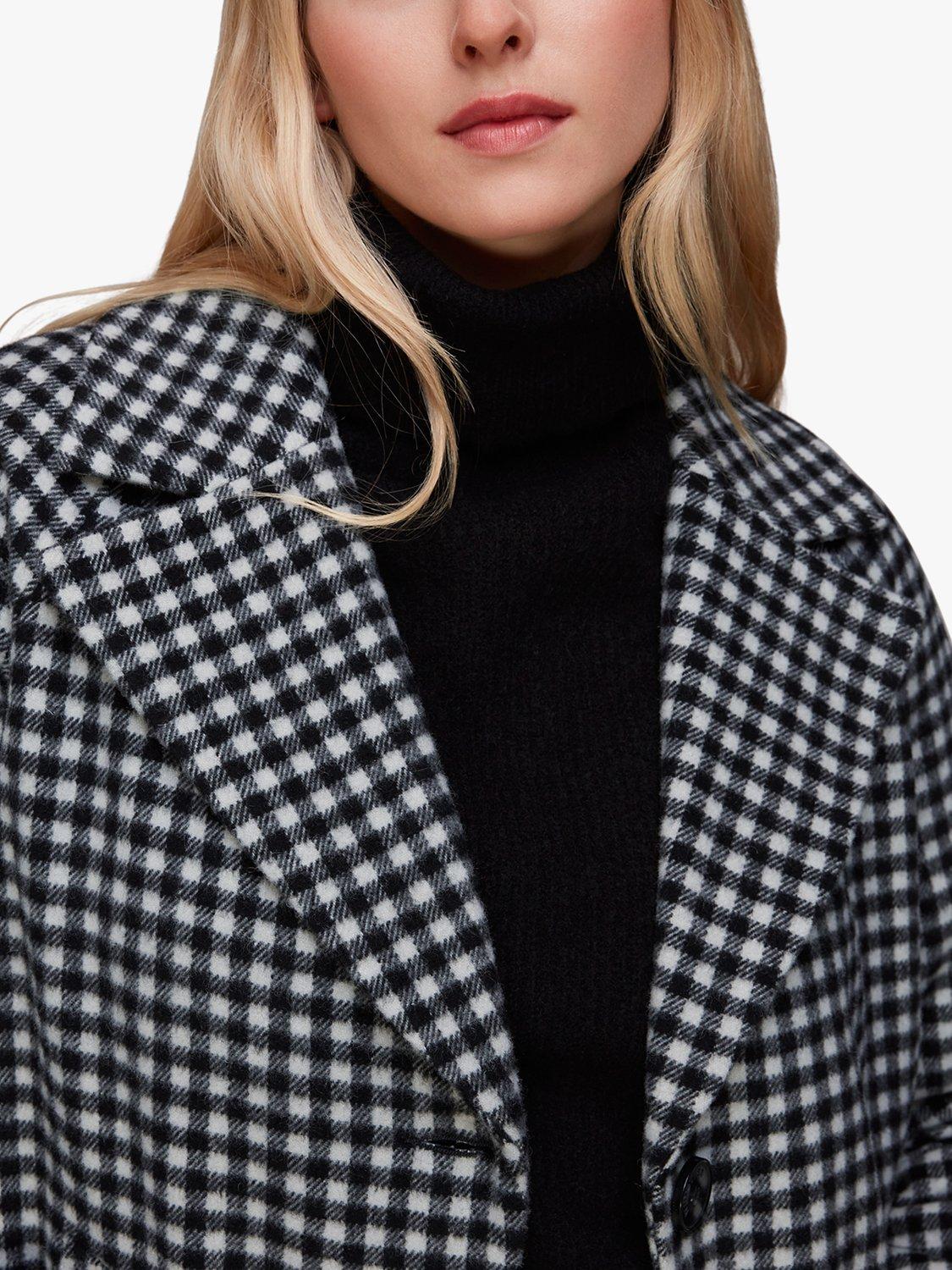 WhistlesGingham Wool Cocoon Coat, Black/Multi