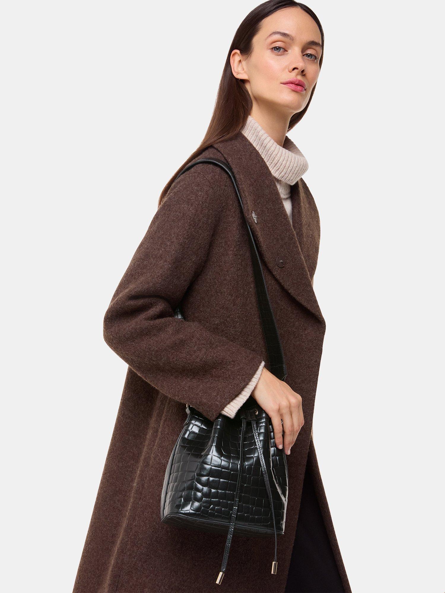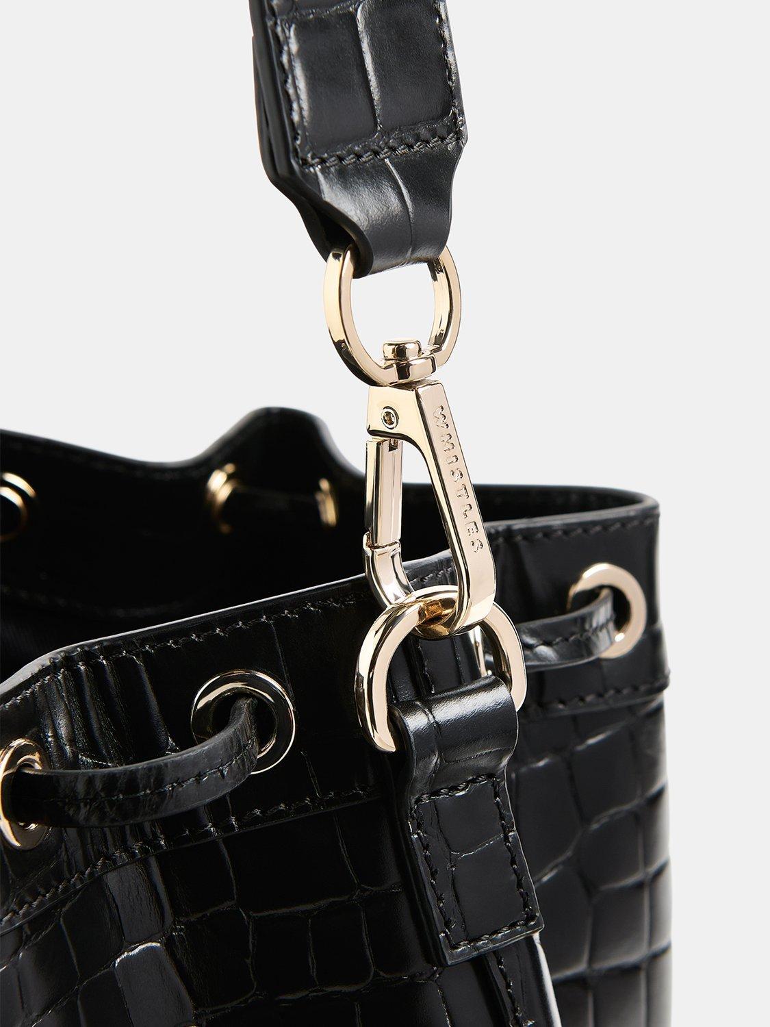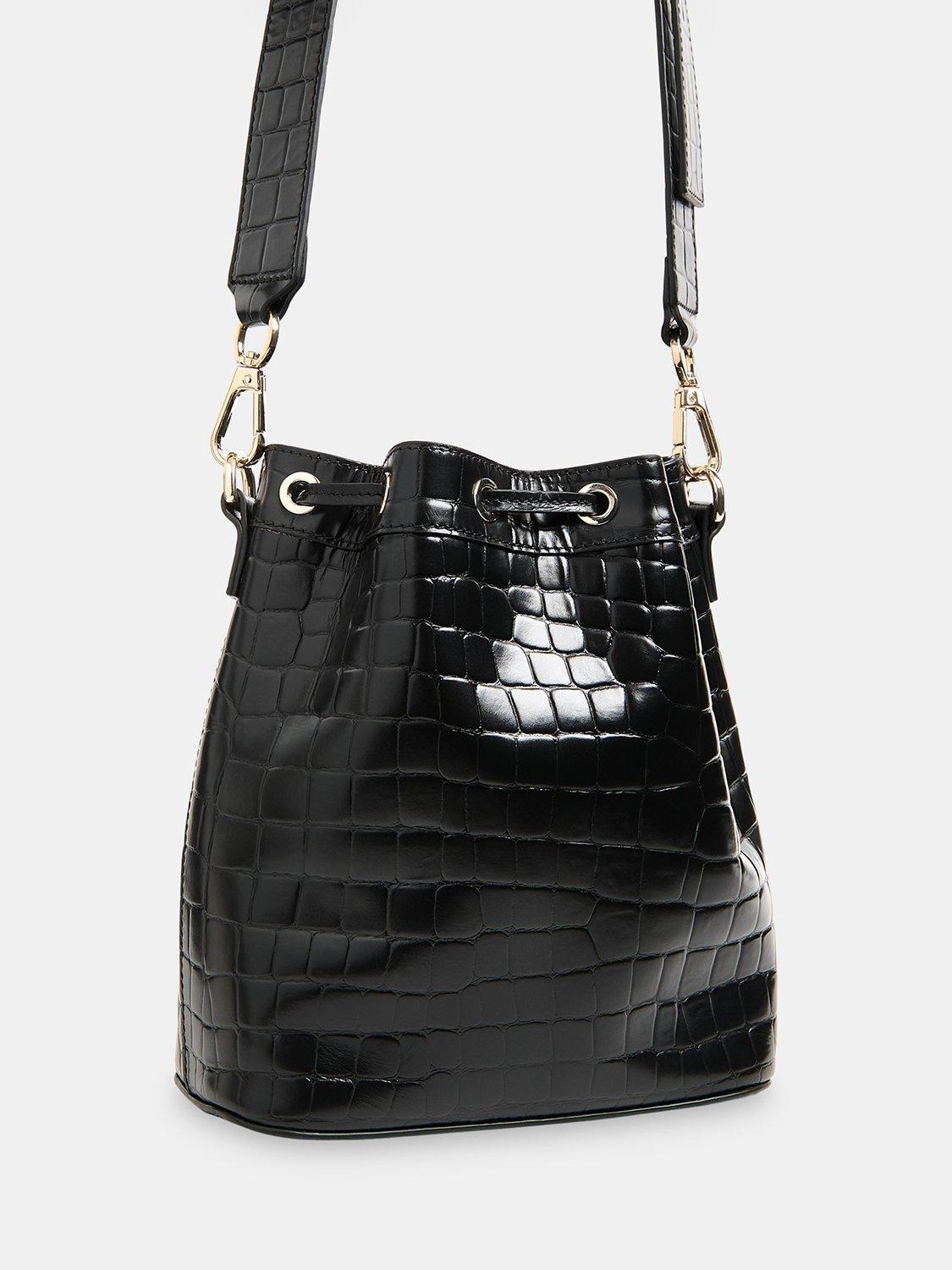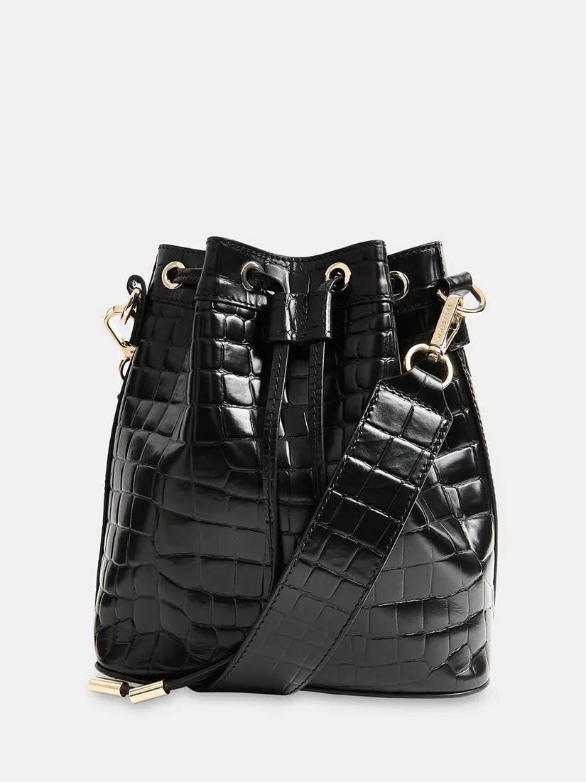A sweet style with up to date appeal, choose this bucket bag from Whistles. Made from croc textured leather that's durable enough to survive daily scuffs and knocks, it has an adjustable strap and secures with a drawstring top.