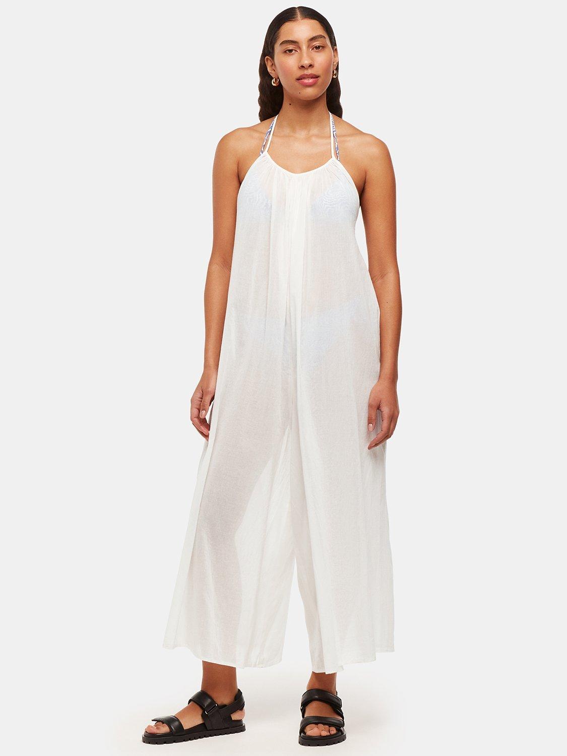 Carved with a halter neckline and spaghetti straps, this jumpsuit by Whistles is shaped to a wide leg and is crafted from cotton for a sumptuous feel and comforting fit.