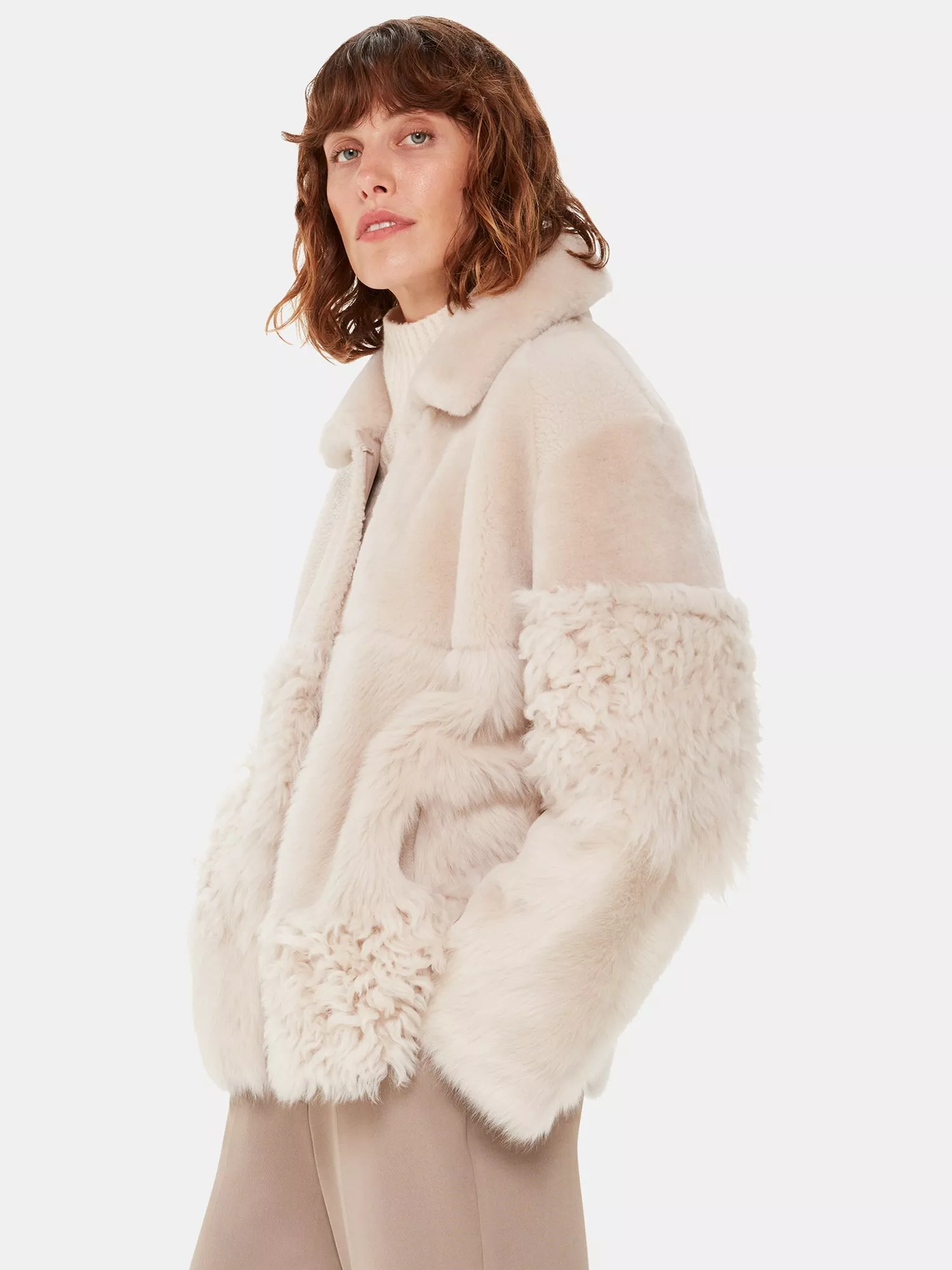 In an ultimately boxy fit, it is made from soft shearling in patchwork pieces creating a sleek addition to your ensemble.