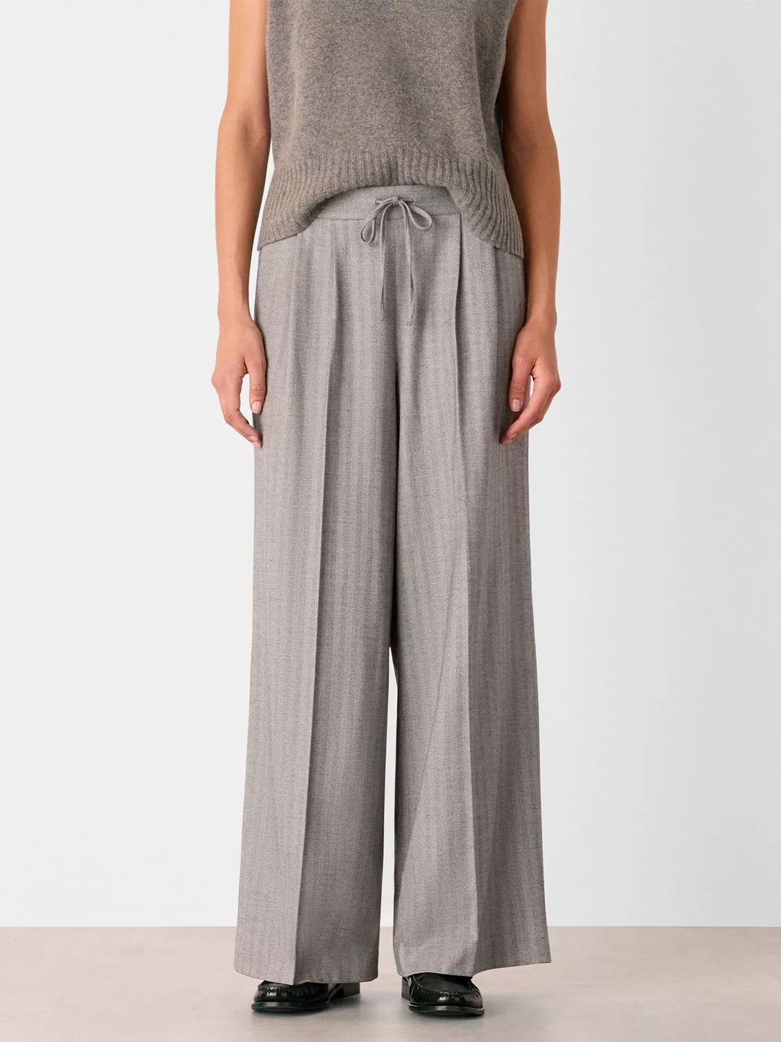 Carved out to an ample wide leg - you'll constantly find yourself reaching for these herringbone trousers from Whistles. They are designed to sit mid rise with an elasticated drawstring waist and longer length hems.