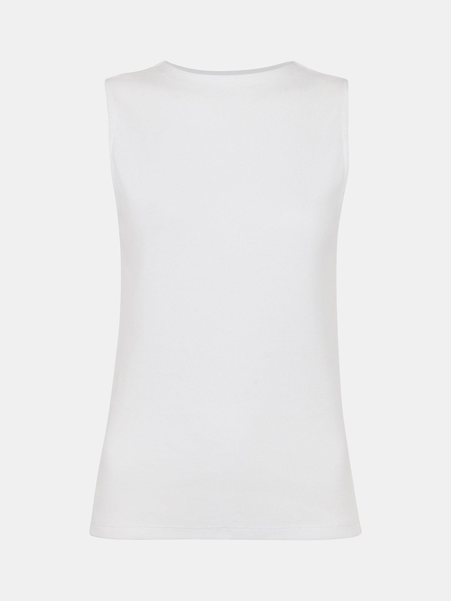 Drawing the eye with its boat neckline and a sleeveless design, it is made from a soft cotton blend and is ideal for relaxed daytime wear.