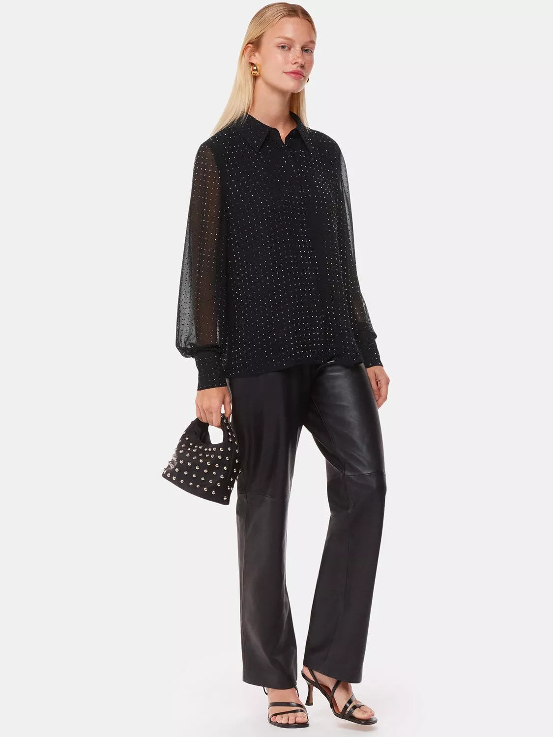 Elevating your evening attire, this shirt from Whistles boasts eye-catching pin dot embellishment. Designed with a crisp collar neckline and long sheer sleeves, it's one for your next social event, whether you're glamming up for after dark drinks or heading to lunch with friends.