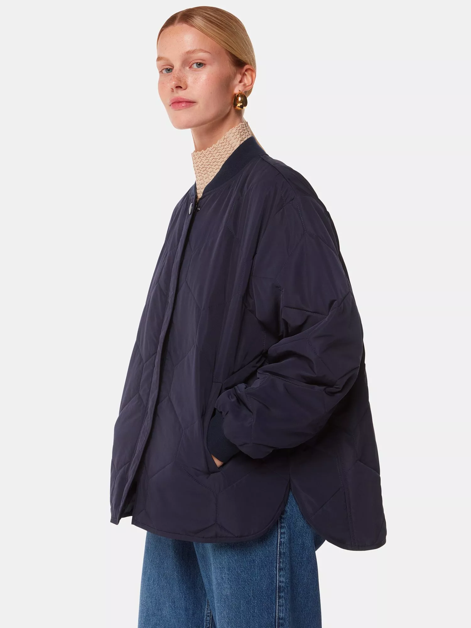In a style that always comes up trumps, this quilted bomber jacket from Whistles falls to a regular length.