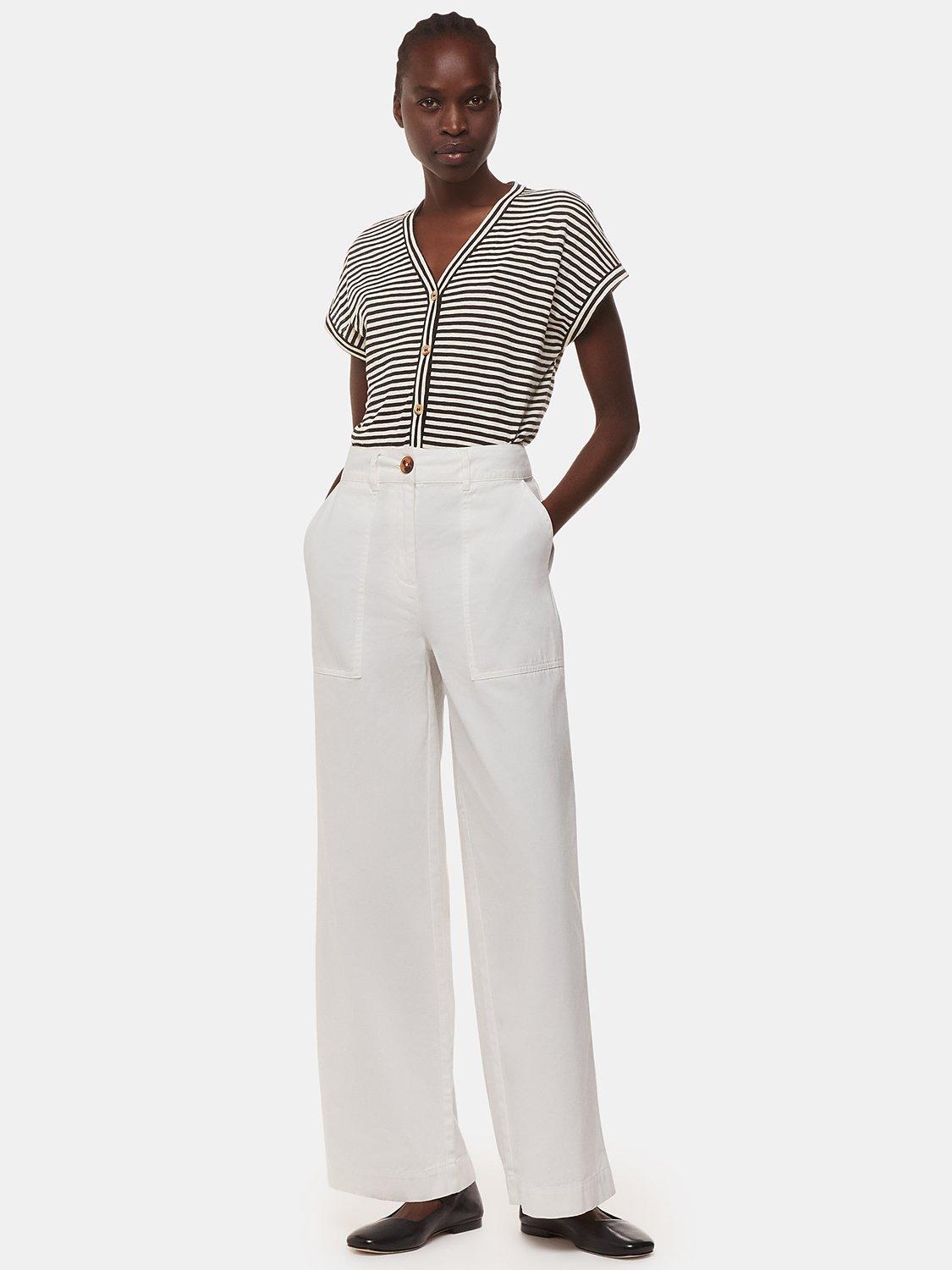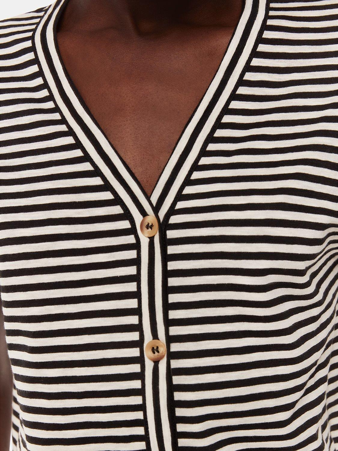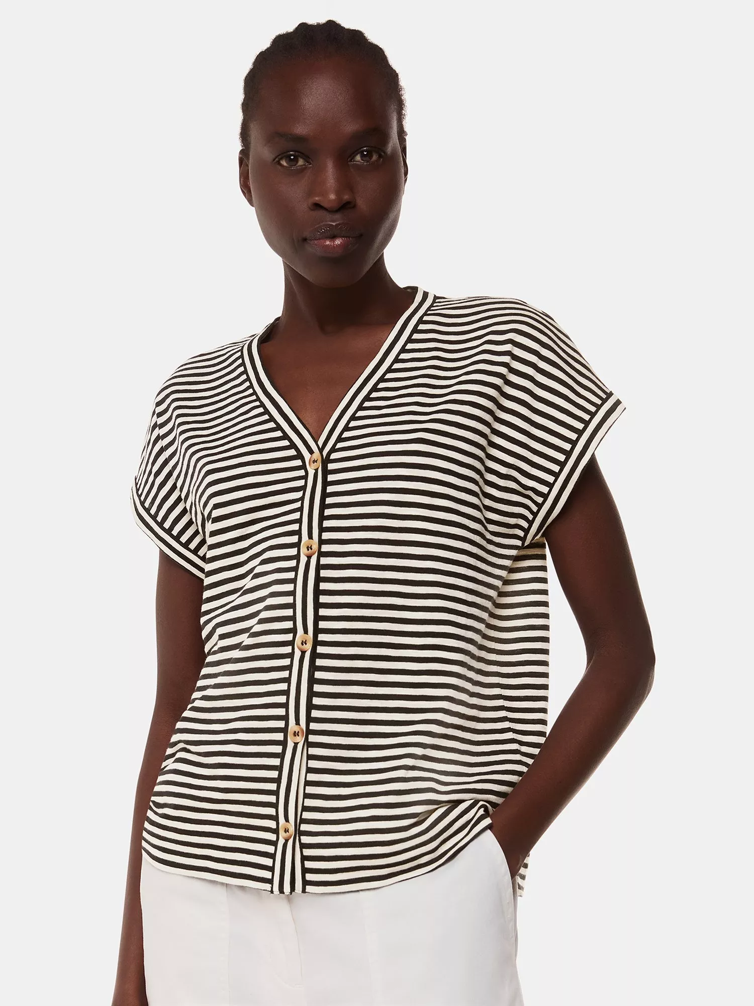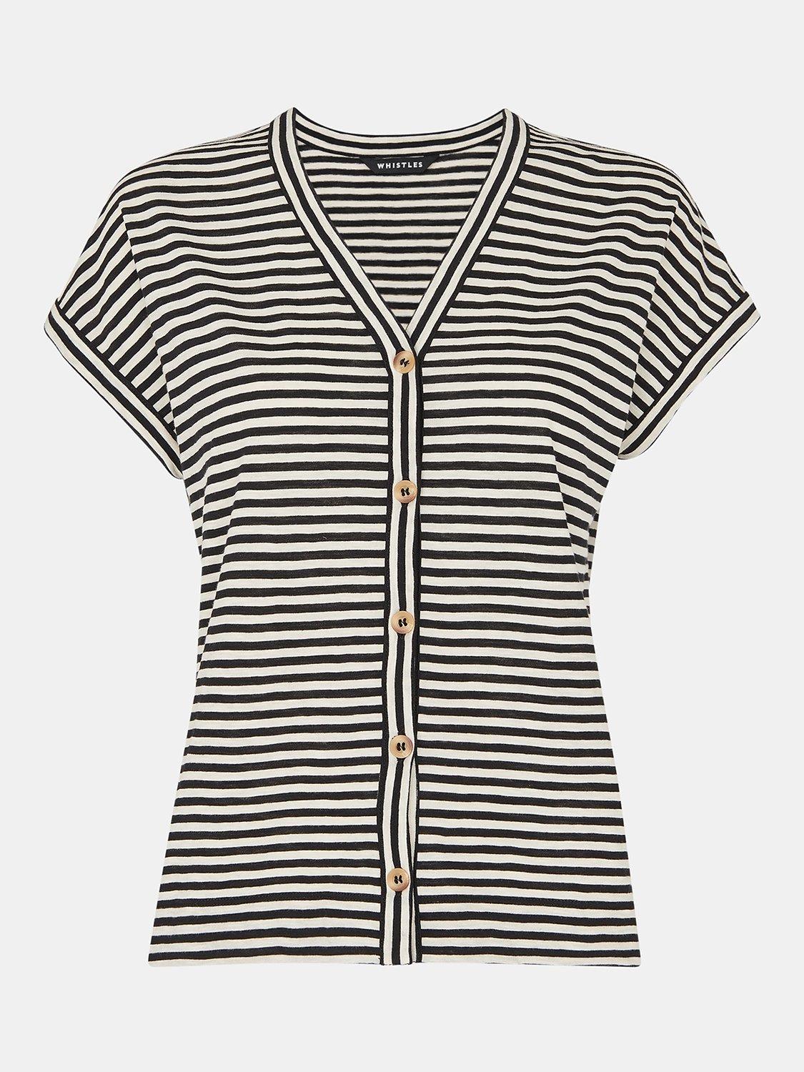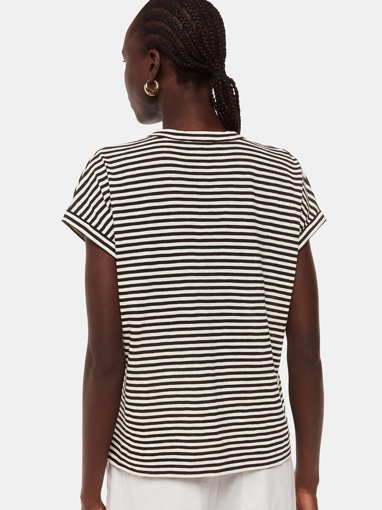 For the casual every day, this t-shirt from Whistles flatters the figure with its striped pattern.