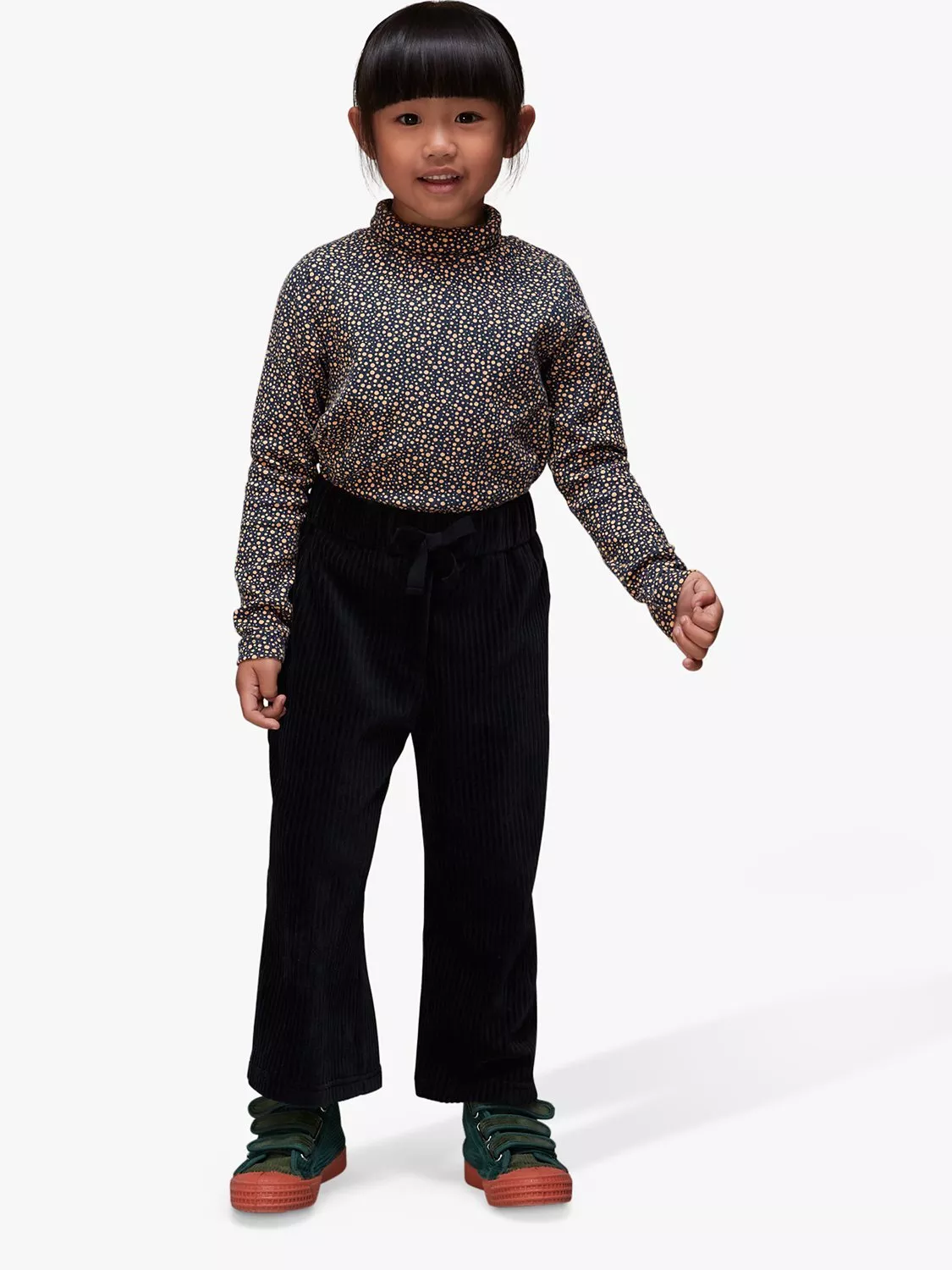 In stretch cotton for comfort, this top is ideal to pad out their Autumn basics. Decorated with sweet spots and featuring a high neck, pair with the matching trousers for a coordinated look.