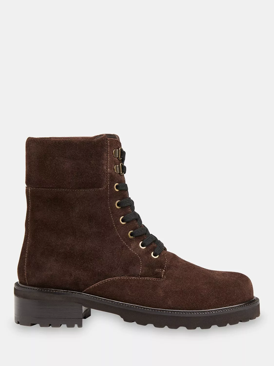 Ankle boots in soft leather with a comfortable 3.5cm block heel. The round closed toe and lace-up design keep things smart and practical, perfect for adding a unique edge to your casual looks.