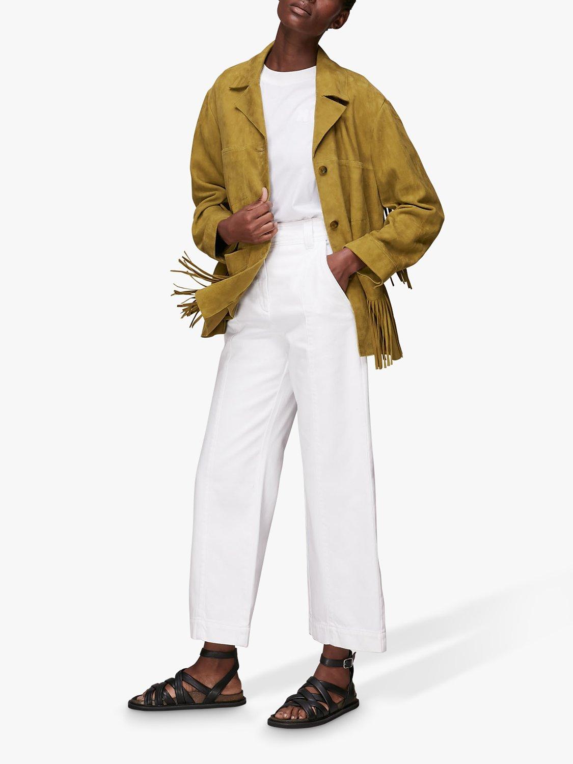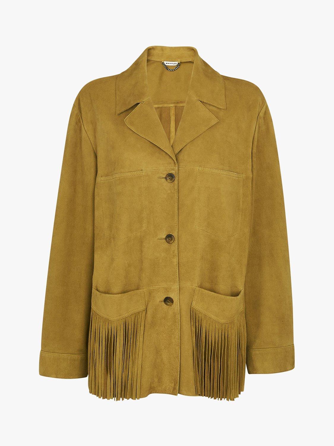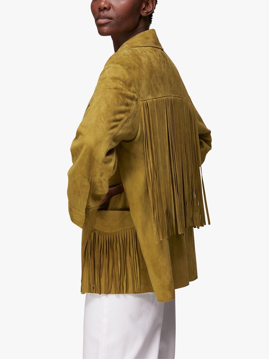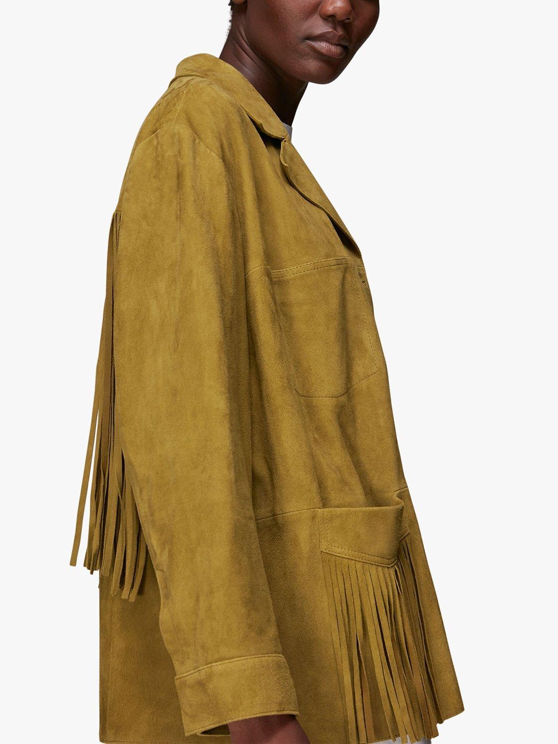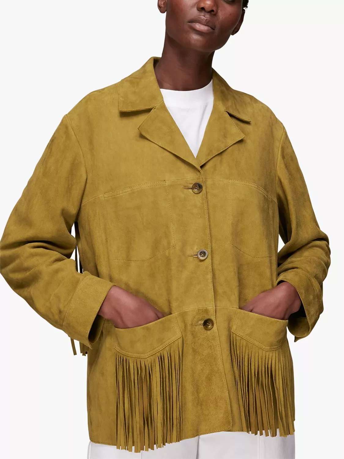 Designed with tassels that playfully swish and sway, this jacket from Whistles has been crafted from sumptuous suede in a rich tone that beautifully complements neutrals and denim. It has a relaxed boxy fit and is detailed with patch pockets, a soft collar and button front fastenings.