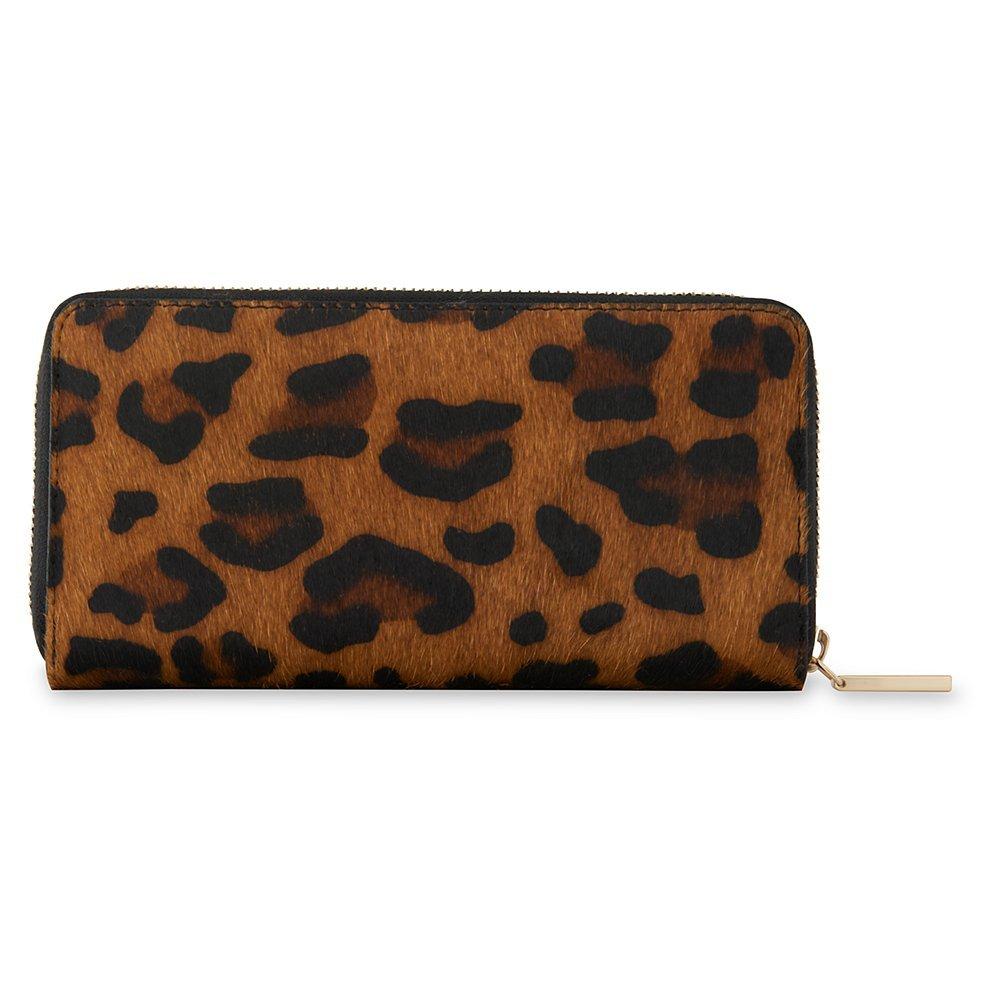 A piece designed to be practical, but also on trend with the animal print mock pony leather style. The purse features multi card slots, an internal zip compartment and strong fastening to conceal your belongings. Intricate branding detail on the gold hardwear finishes off the look.