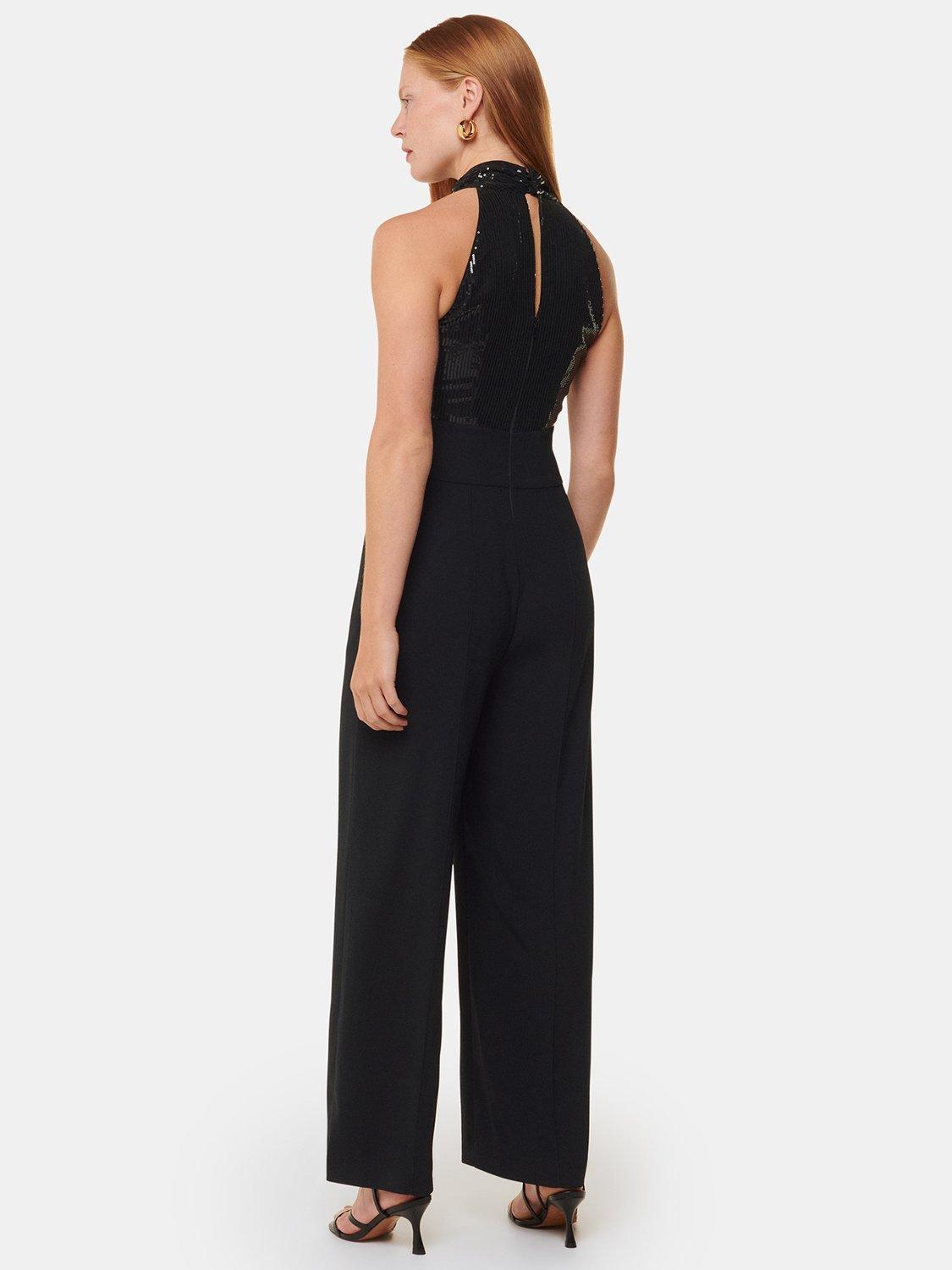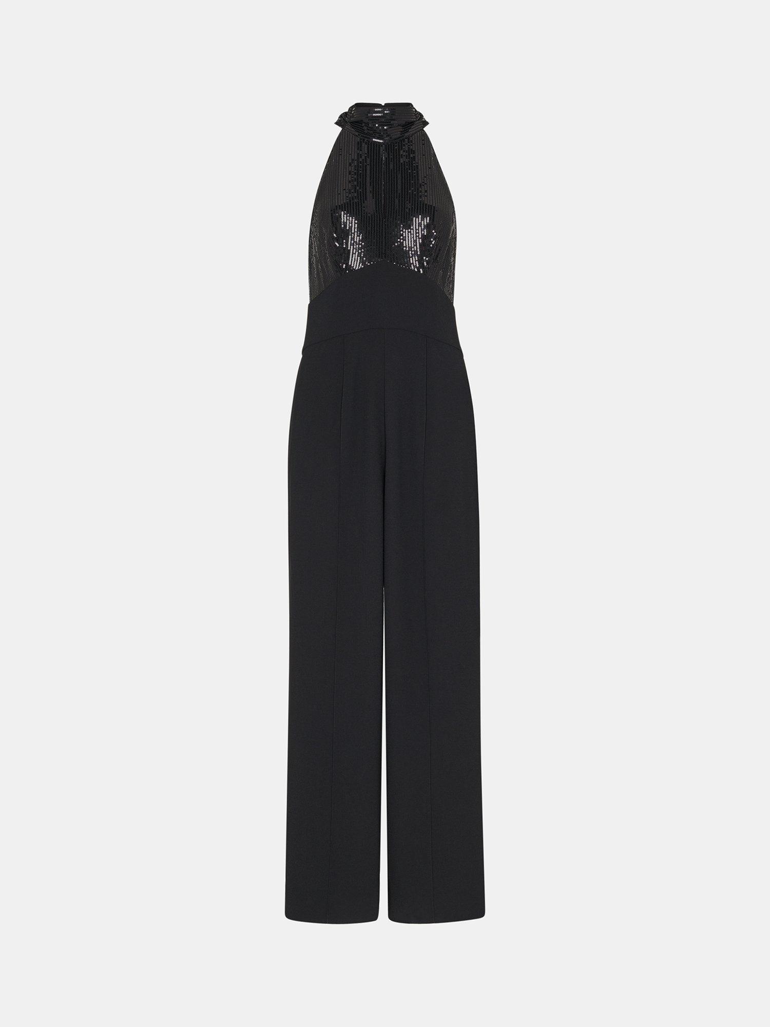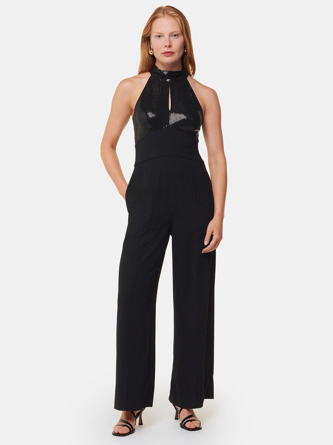 With a sequin embellished halter bodice, this jumpsuit by Whistles falls to a straight leg silhouette. Throw on with some heels for a sophisticated look.