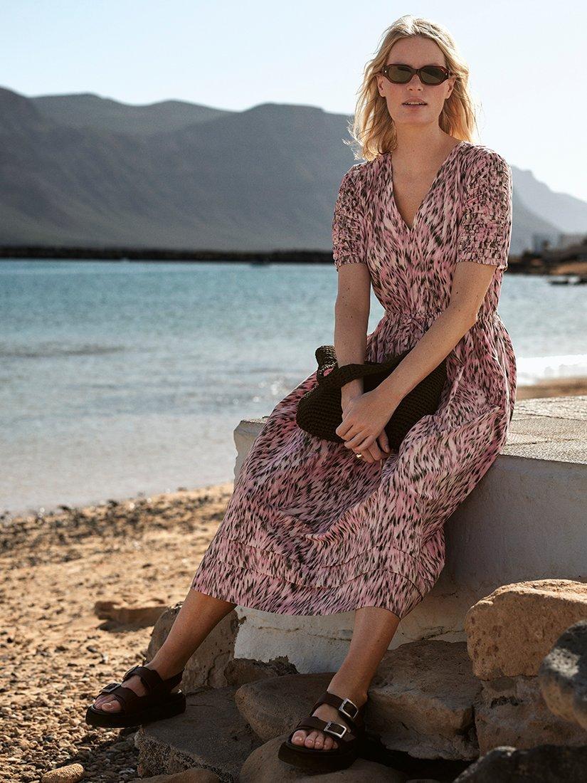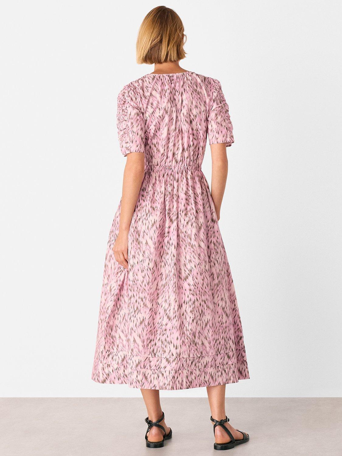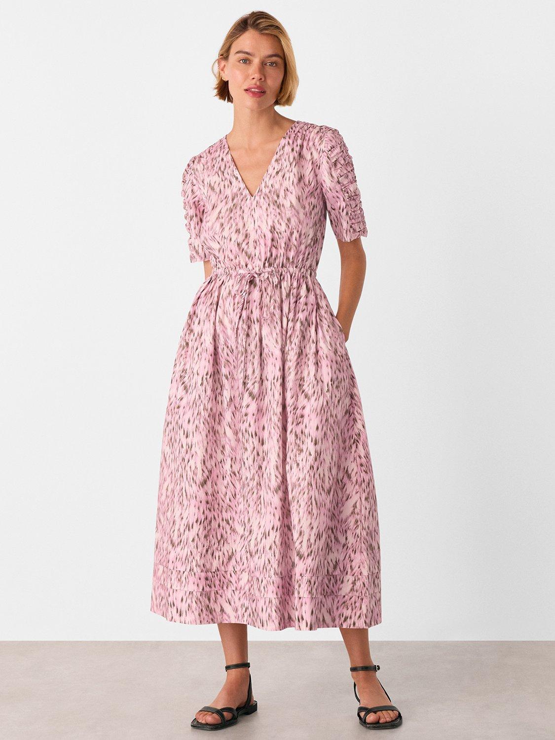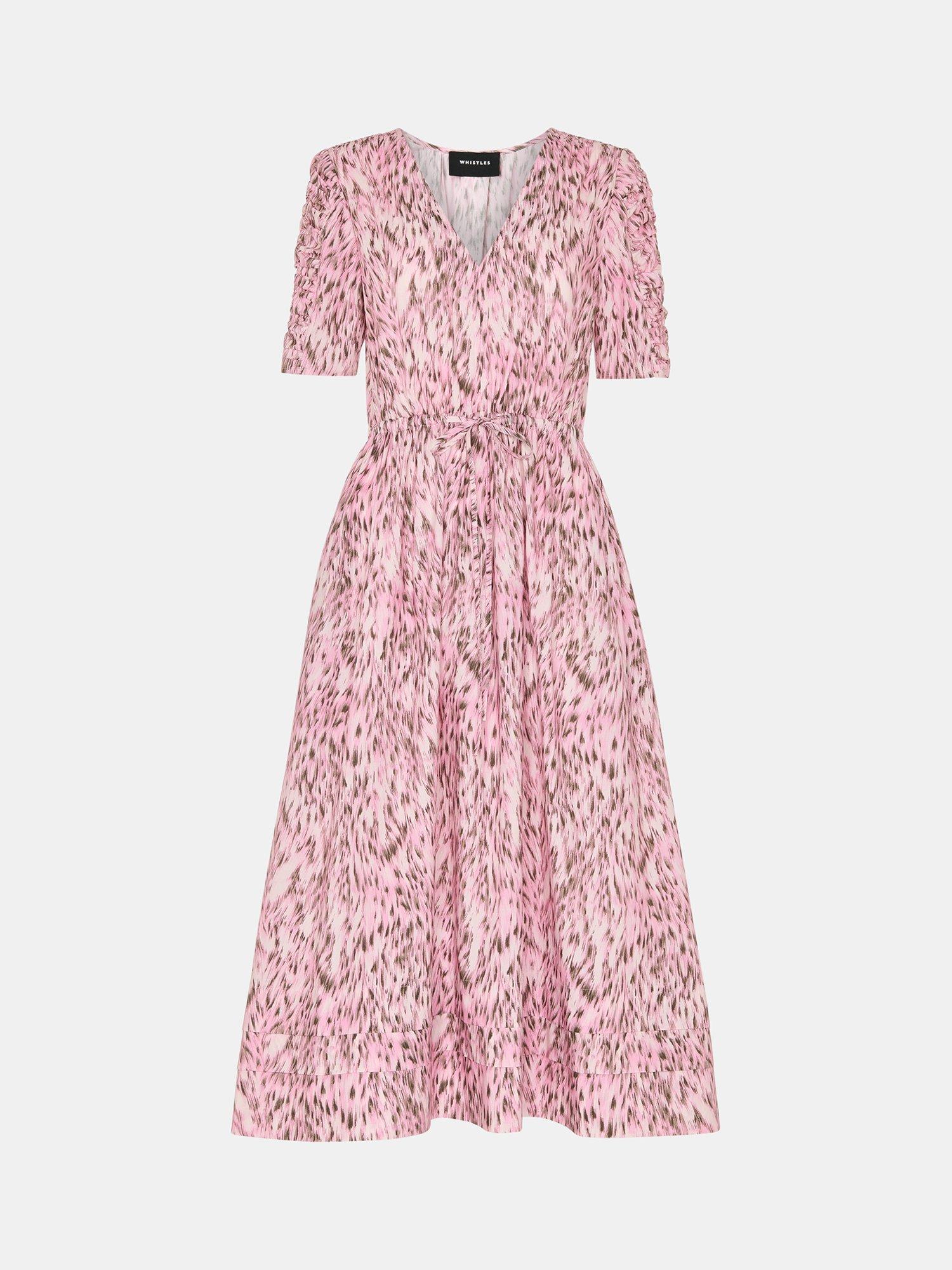 Whistles’ fit and flare midi dress sparks interest with its abstract-animal print, clever v-neck, and short sleeves. Thoughtfully crafted from soft 100% cotton, it’s designed for comfort and joy with an adjustable drawstring waist.