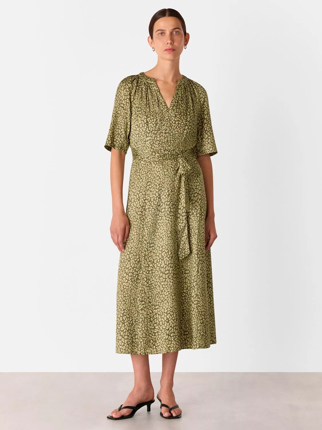 Whistles' fit and flare dress, designed for comfortable movement and eye-catching impact. With a playful leopard pattern, V-neckline and elbow-length sleeves, it falls to a comfortable midi.