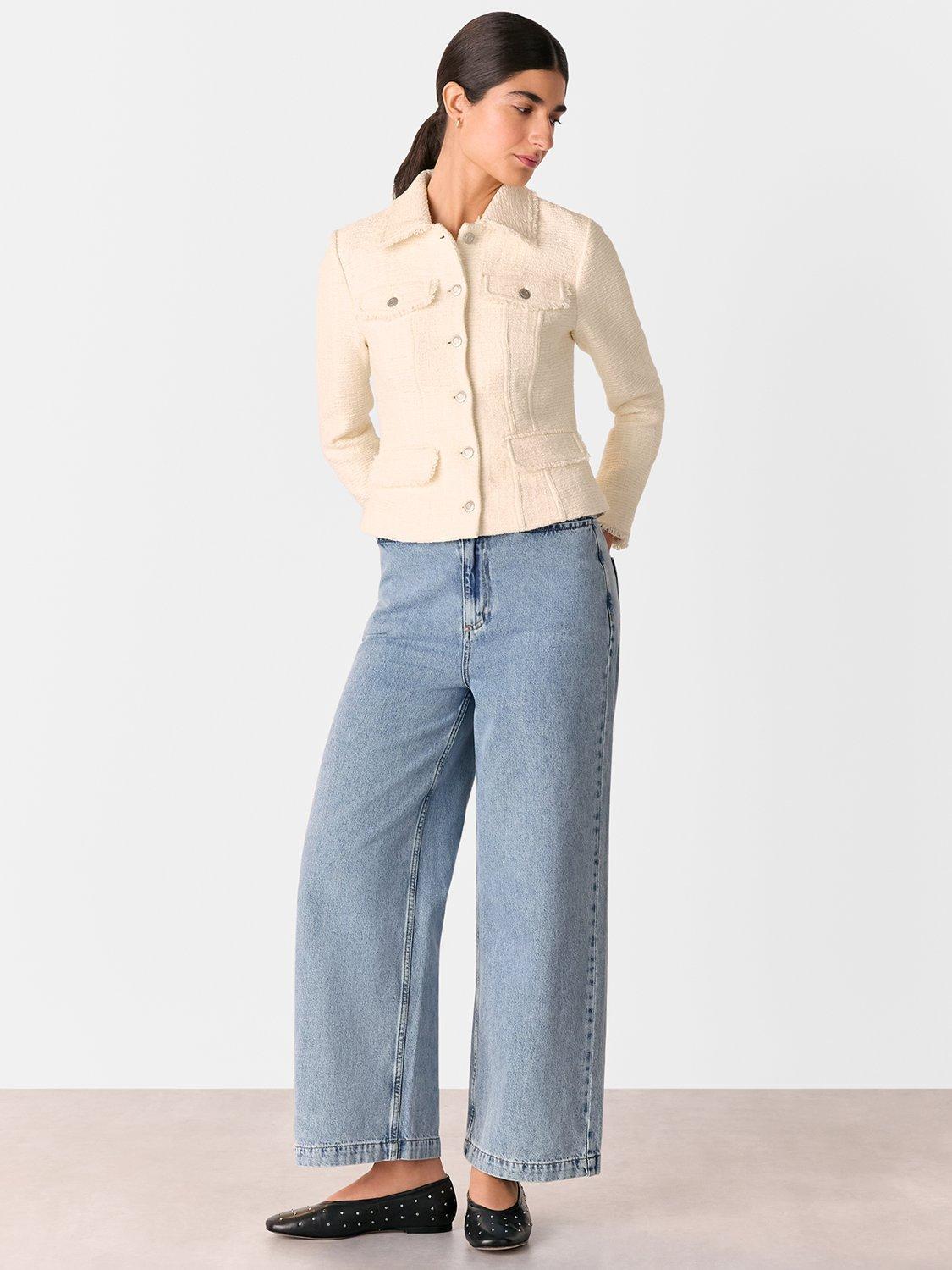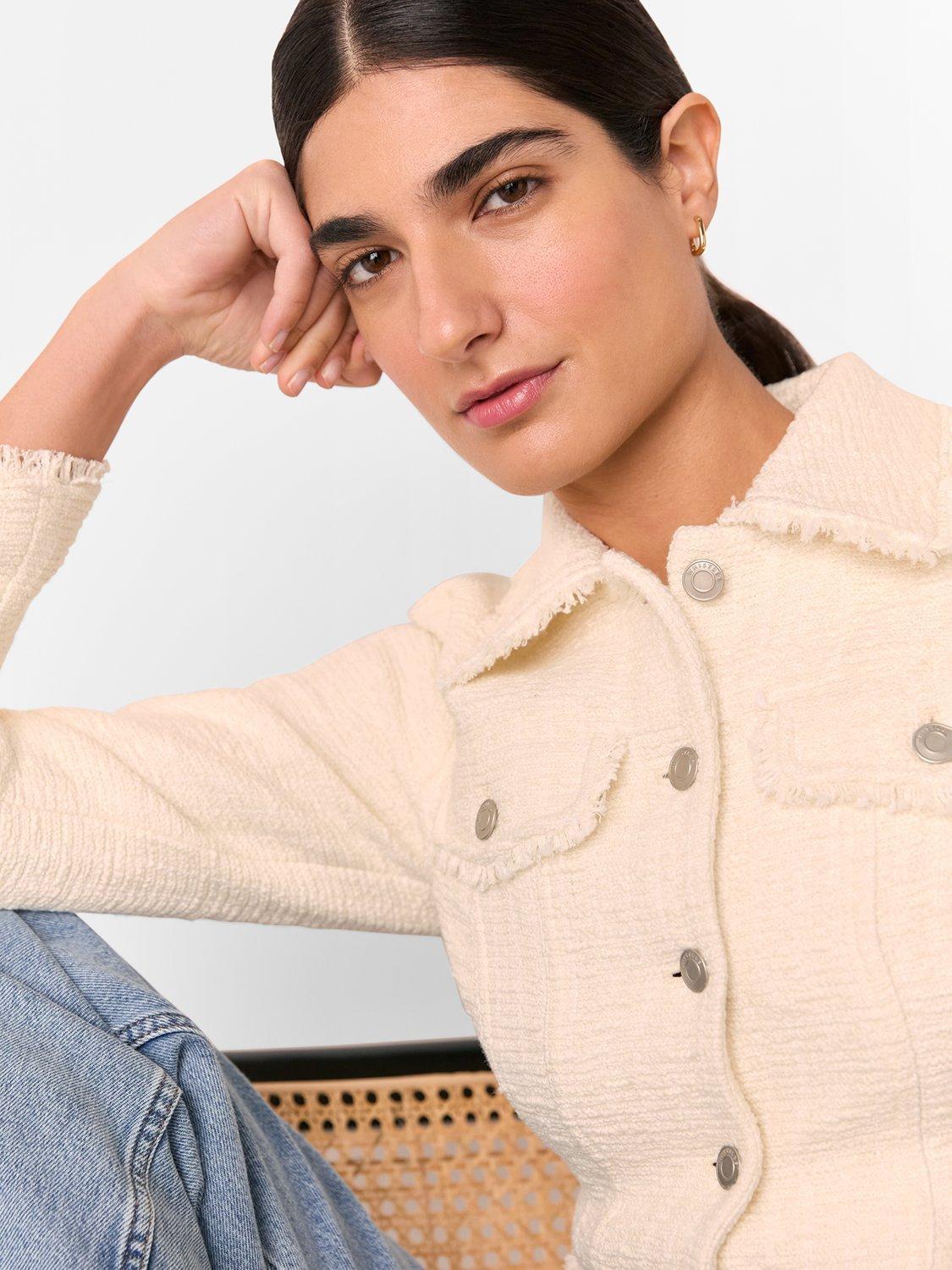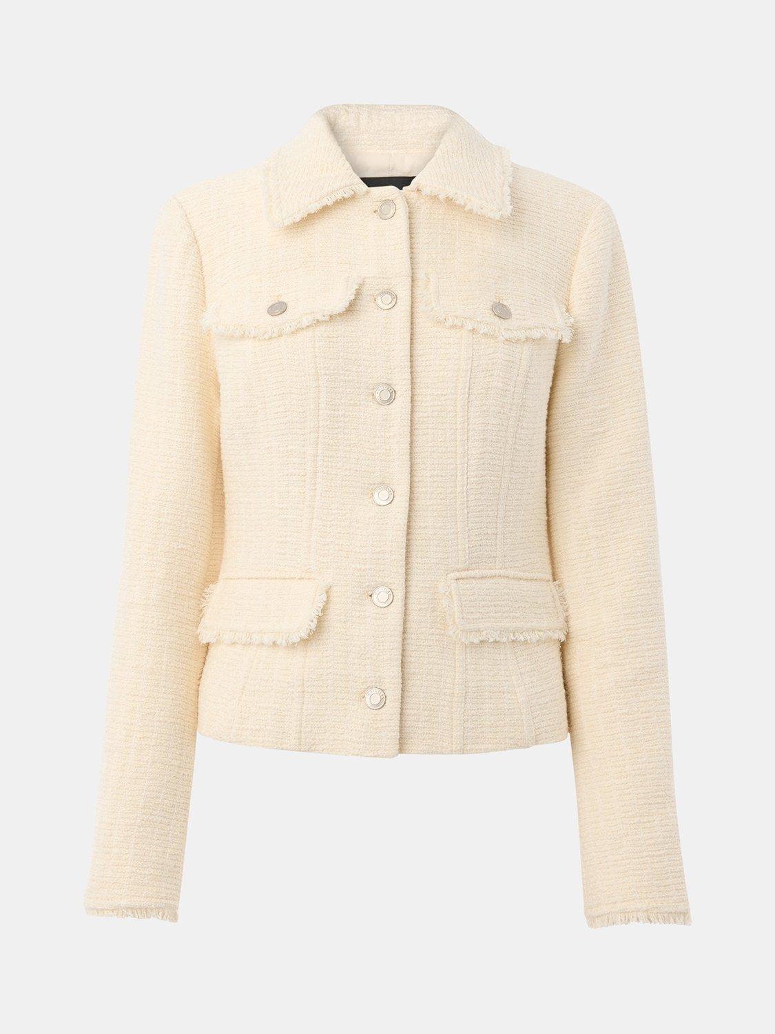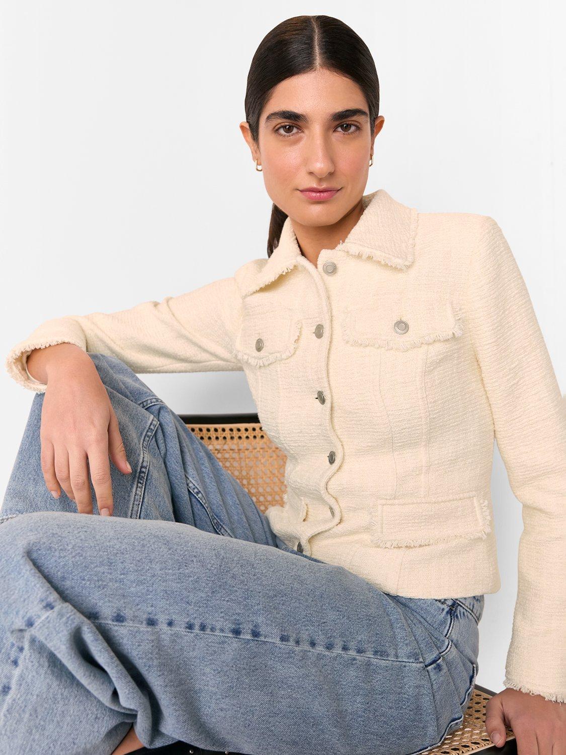 A forever favourite, this jacket from Whistles is made from a textured boucle blend with flapover front pockets and frayed accents.