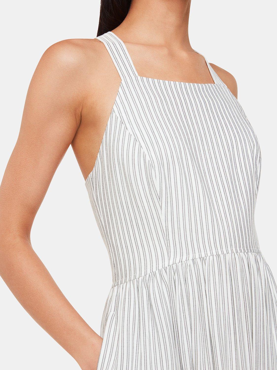 Designed to flatter in a fit and flare shaping, this mid-length dress from Whistles is made from viscose that's beloved for its weightless feel. With an edgy squared-off neckline, this sleeveless style is adorned with contrasting stripes.