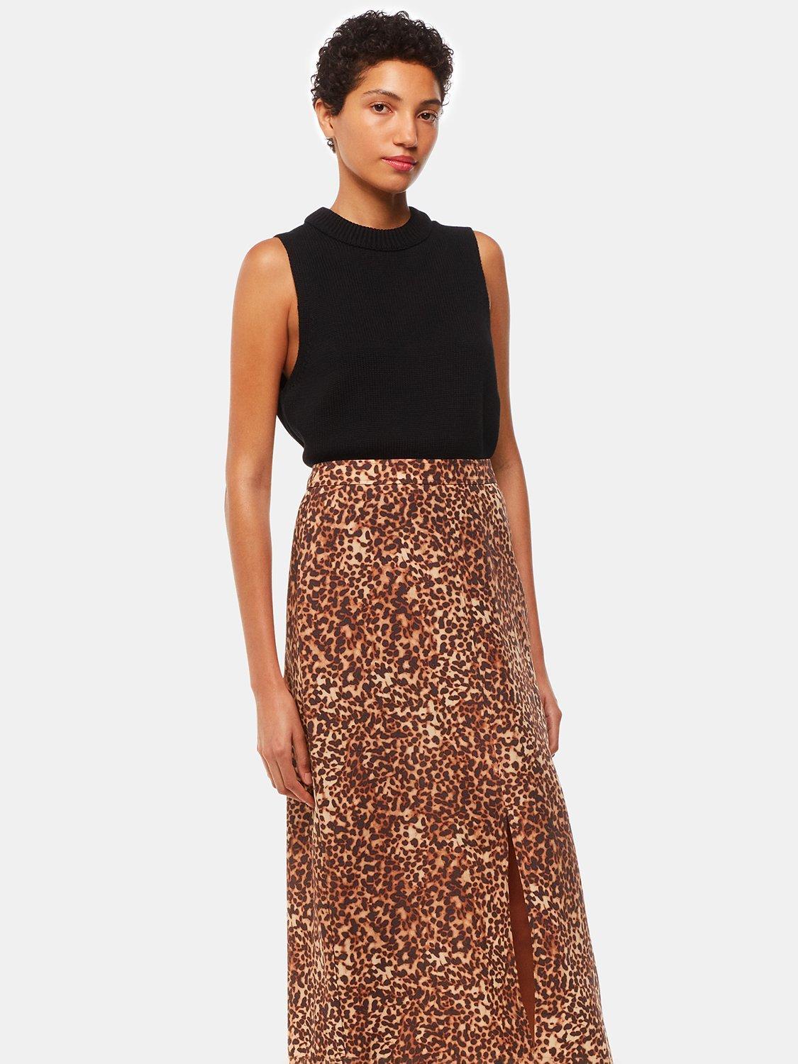 Embracing effortless femininity with an A-line silhouette, this calf-grazing skirt from Whistles takes animal print up a notch.