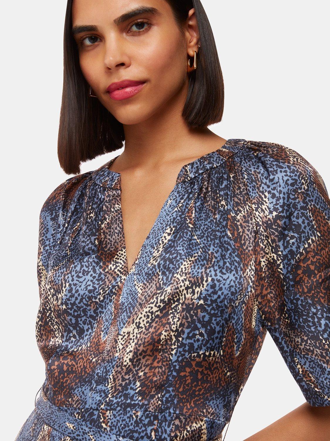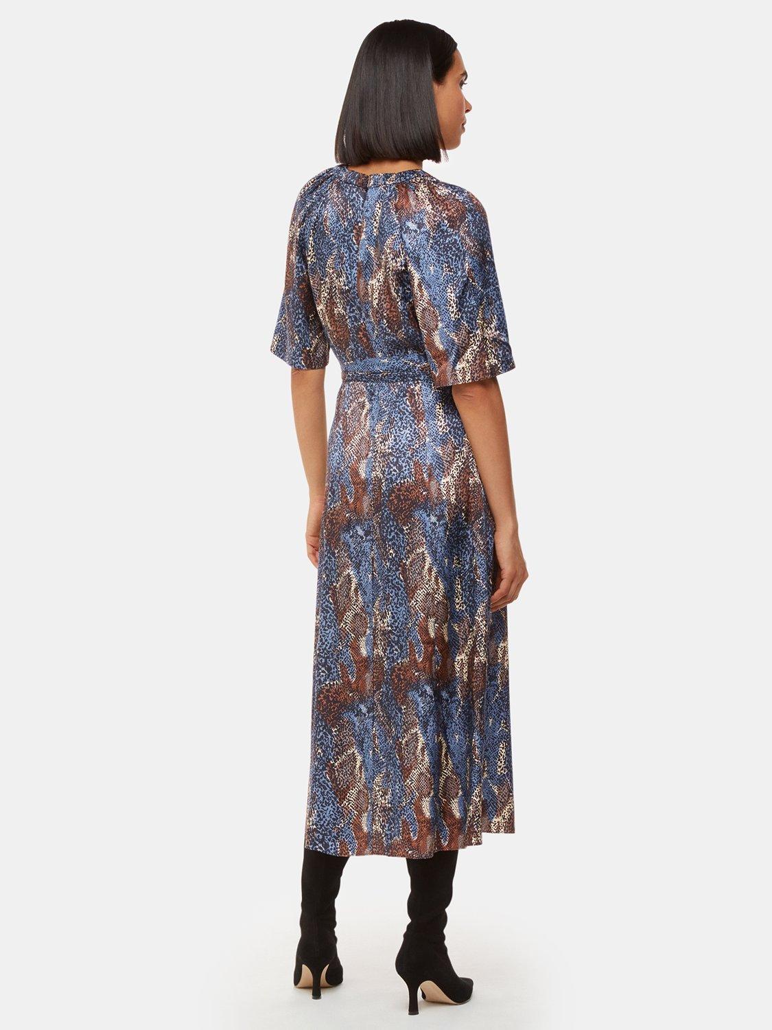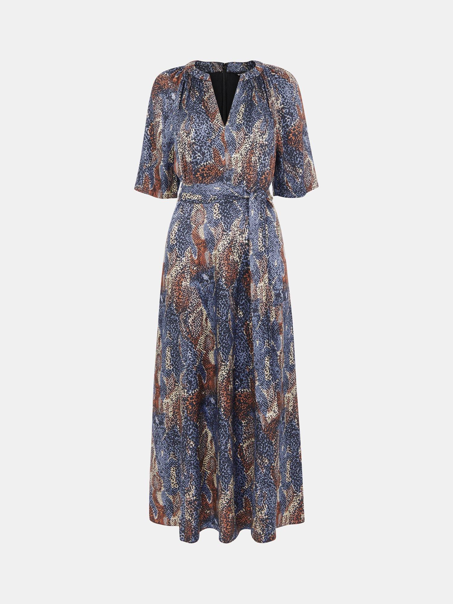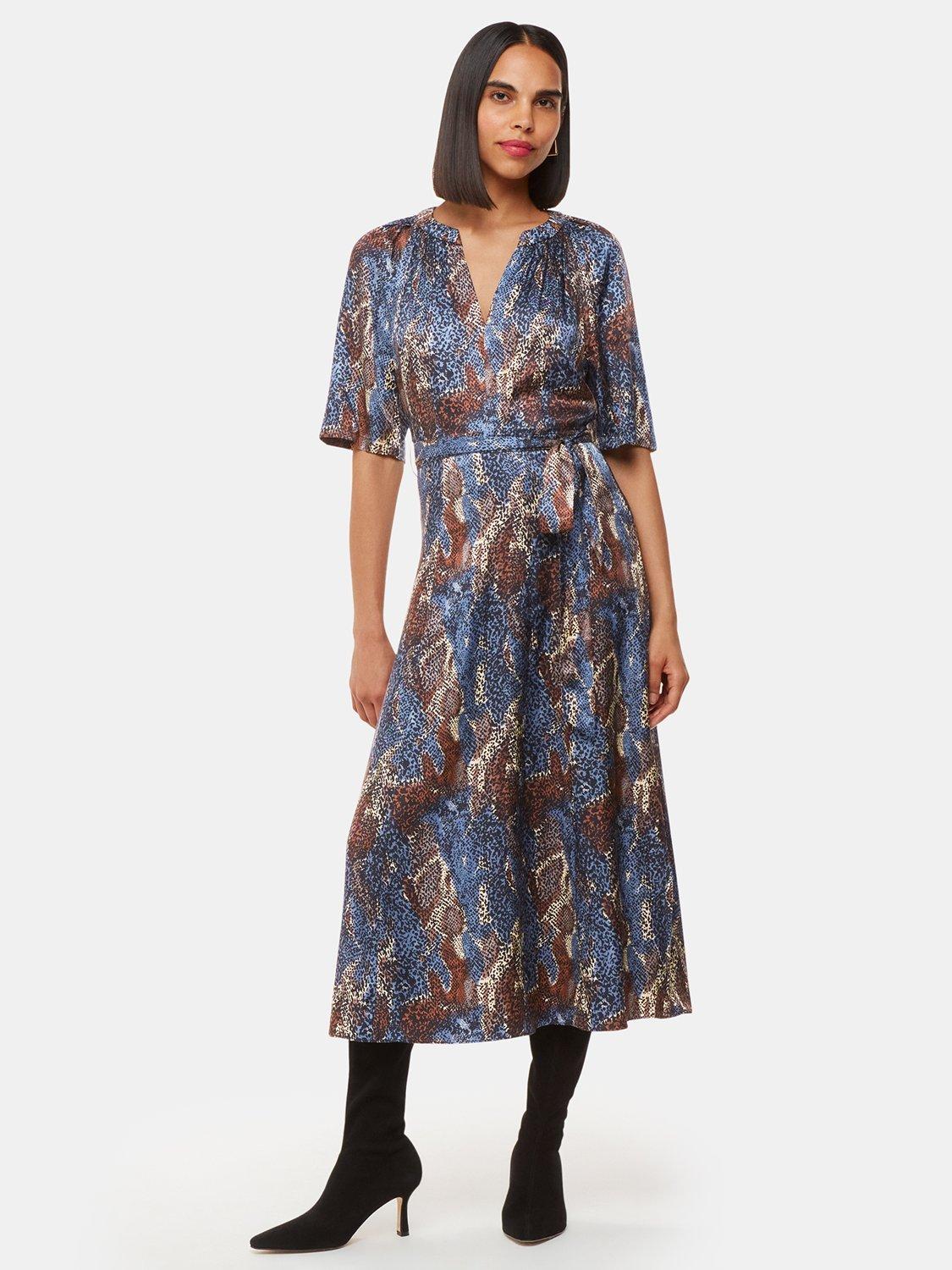 Designed in a fuss-free A-line style with a belted waist, this v-neck midi dress from Whistles is made from liquid-like viscose. Taking snake print up a notch with its combined sheeny finish, it's ideal for evening eventing.