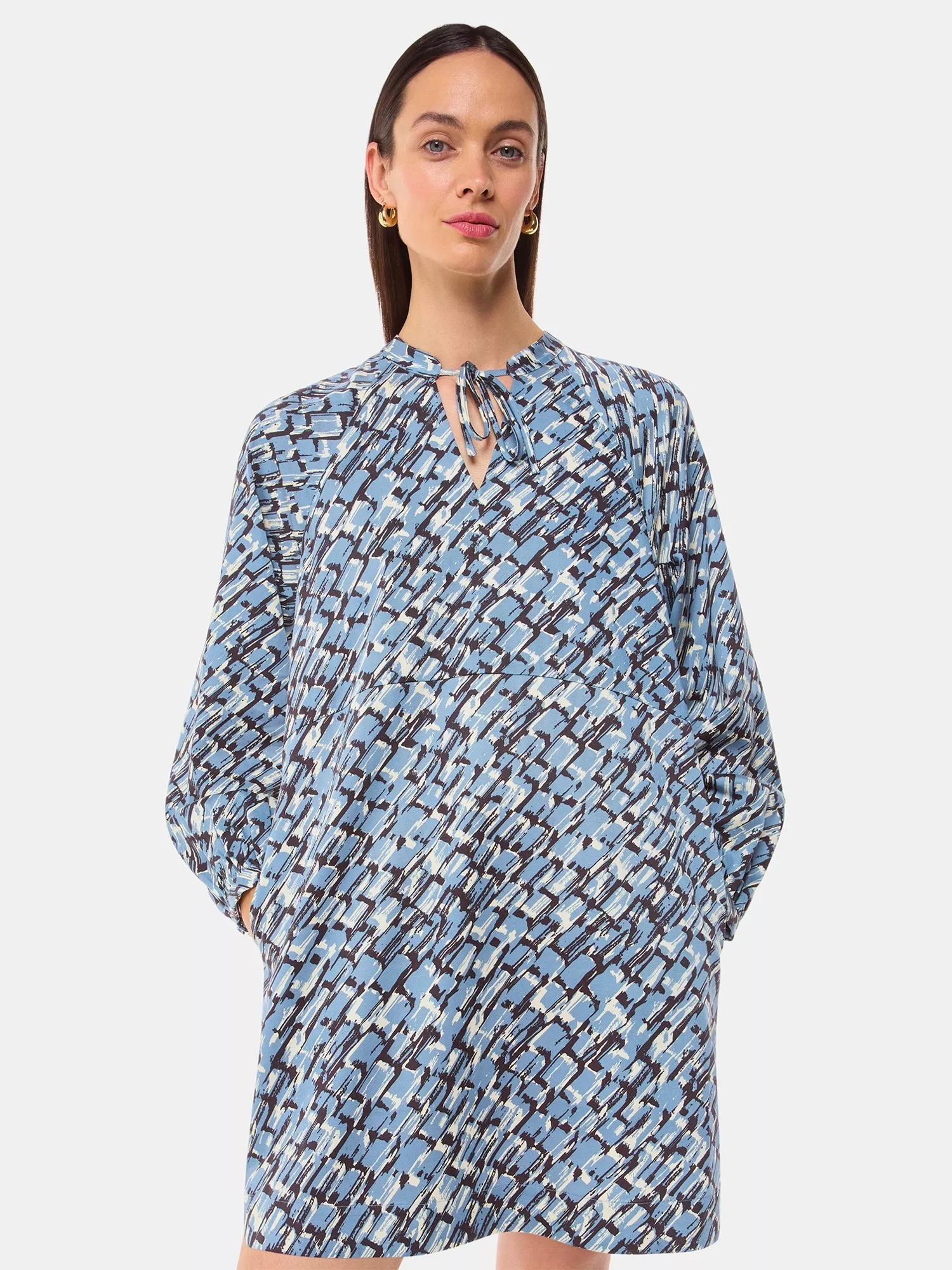 A fuss-free choice thanks to the loose cut, this feathered wing mini dress from Whistles is made from a lightweight blend with a tie neckline and long breezy sleeves.