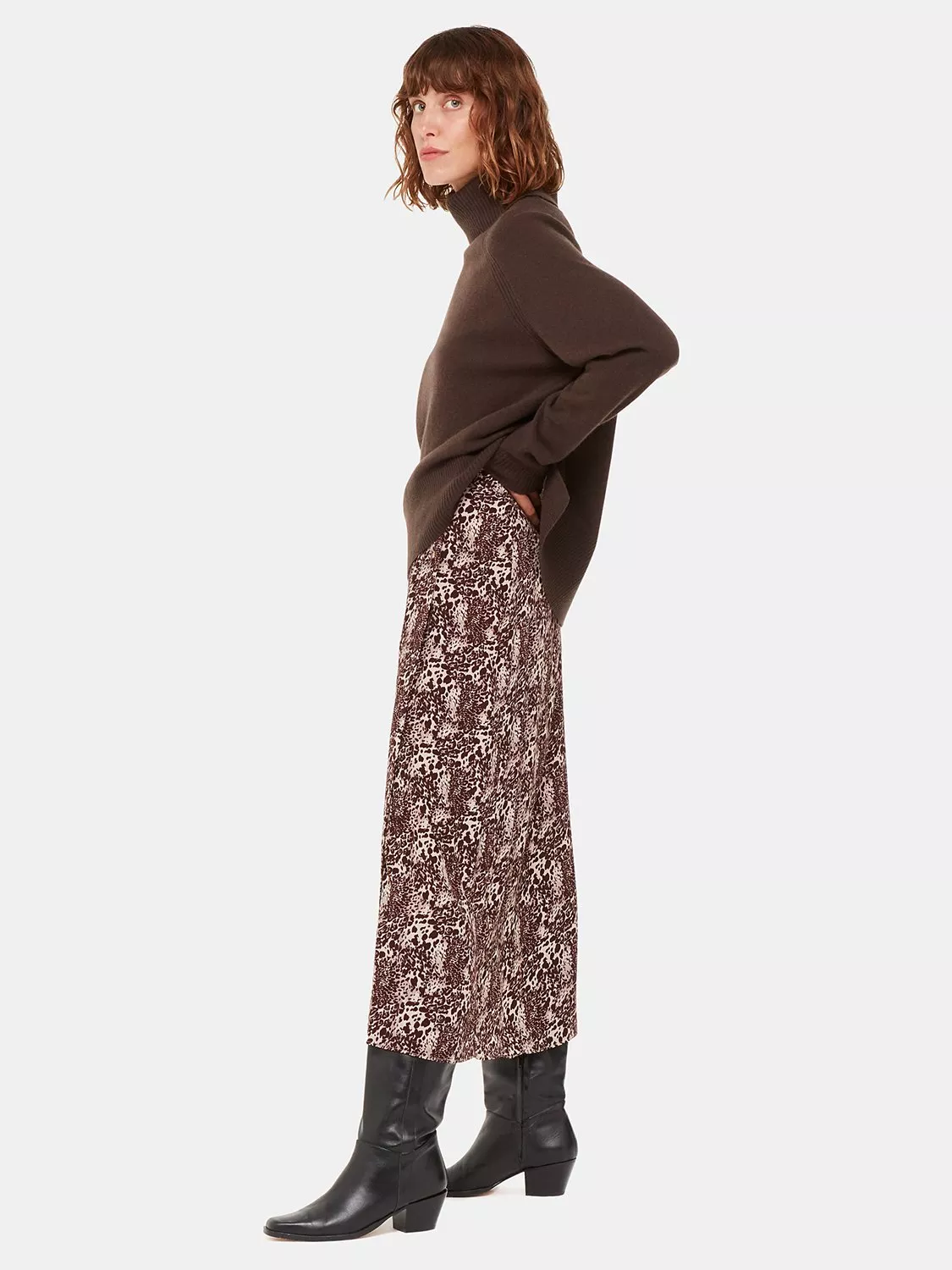 In an endlessly wearable A-line shape, this calf-grazing skirt by Whistles is infused with a hint of the jungle in the form of animal print.