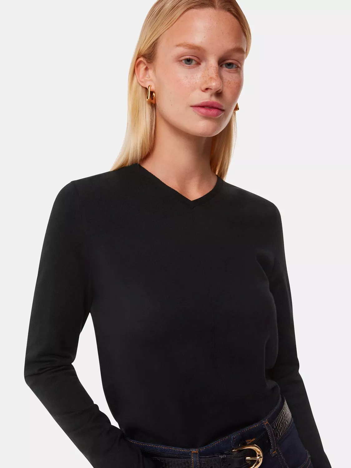 With a V-shaped neckline and long sleeves, this mid-weight jumper from Whistles is whipped up from a cotton-blend fabric for its soft and long-lasting qualities.