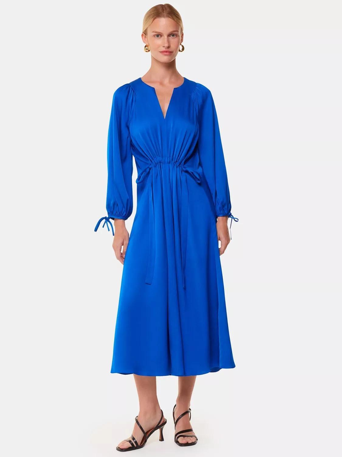 In a flattering fit with ruching that accentuates the waist, this mid-length dress from Whistles is offered in satin. Effortlessly flattering thanks to a fuss-free v-neckline and long sleeves, it is minimally detailed for endless wearability.