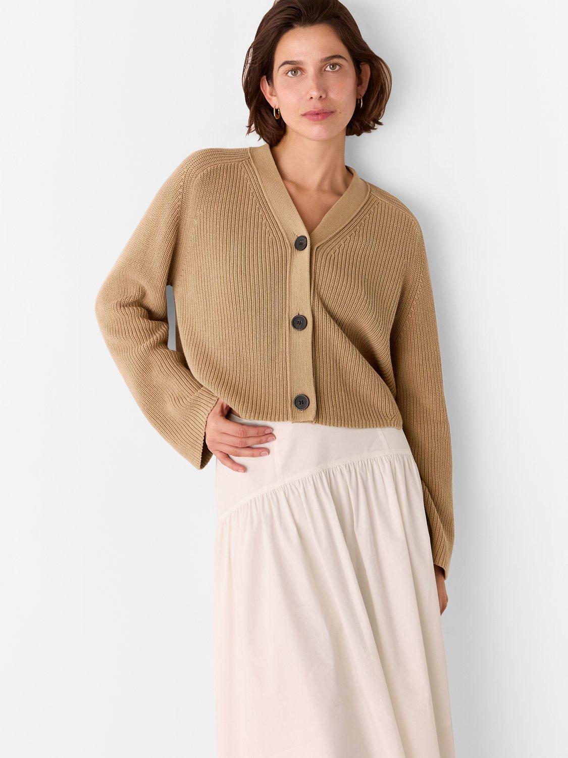 With a v-shaped neckline and long sleeves, this mid-weight cardigan by Whistles is cut from pure cotton for breathable wear.