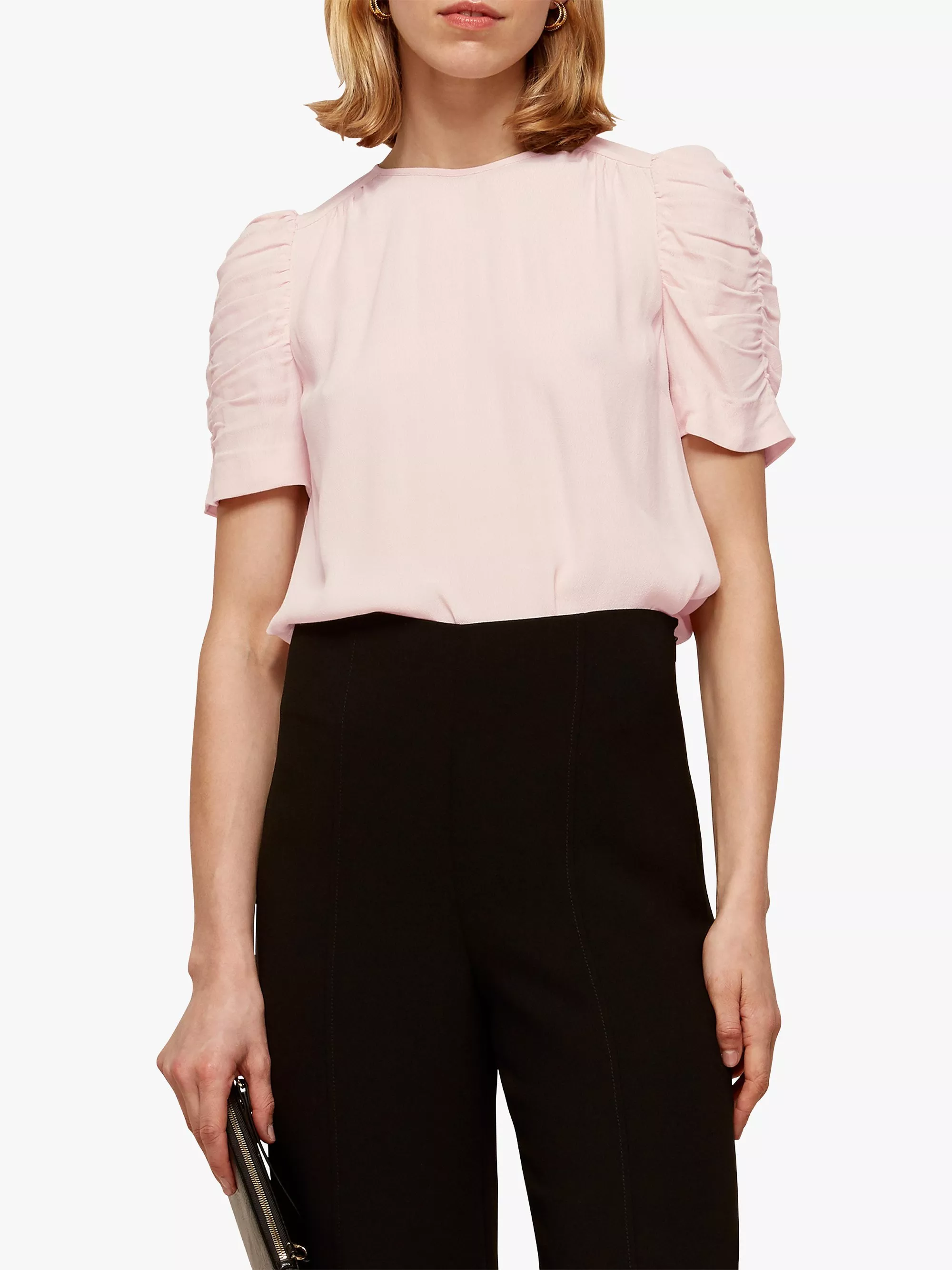 Dramatic ruching at the sleeves gives this Nelly top from Whistles vintage appeal in a new way. No print or pattern necessary. Tuck it into culottes or a mini skirt for a dressed-up daytime look, or try it with denim and heels.