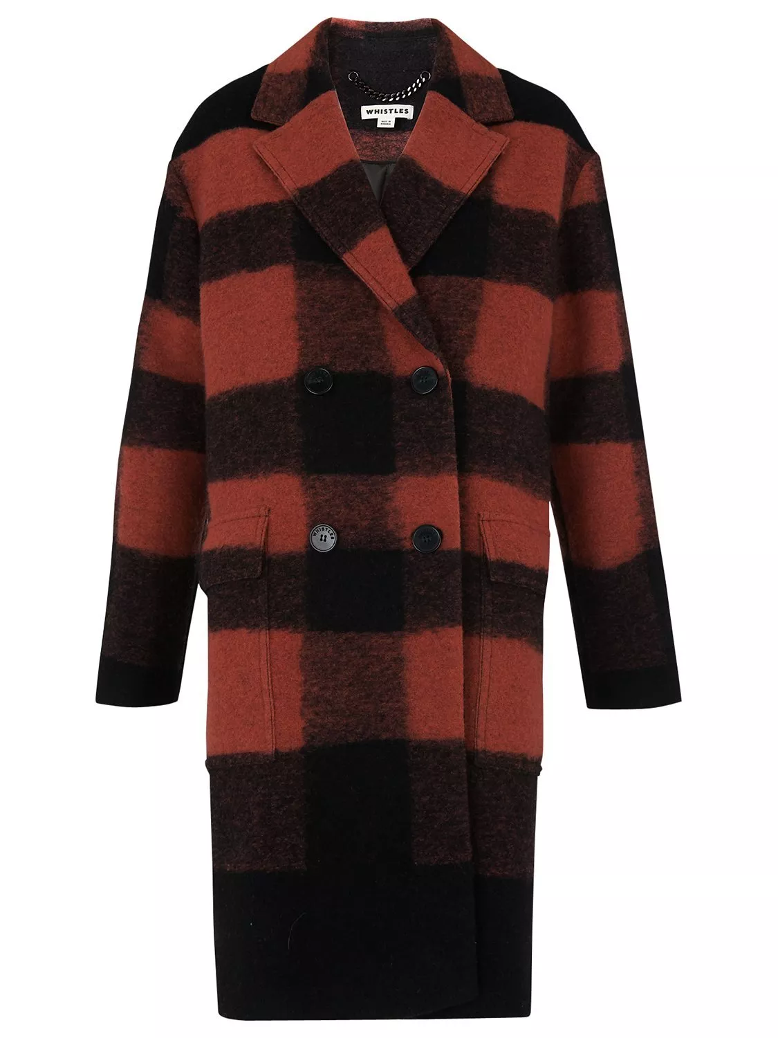 Crafted from a wool blend, this luxurious coat is fully lined for comfort and warmth. Falling to a long length, this double breasted style is a classic piece with the all over large check print adding a modern touch.