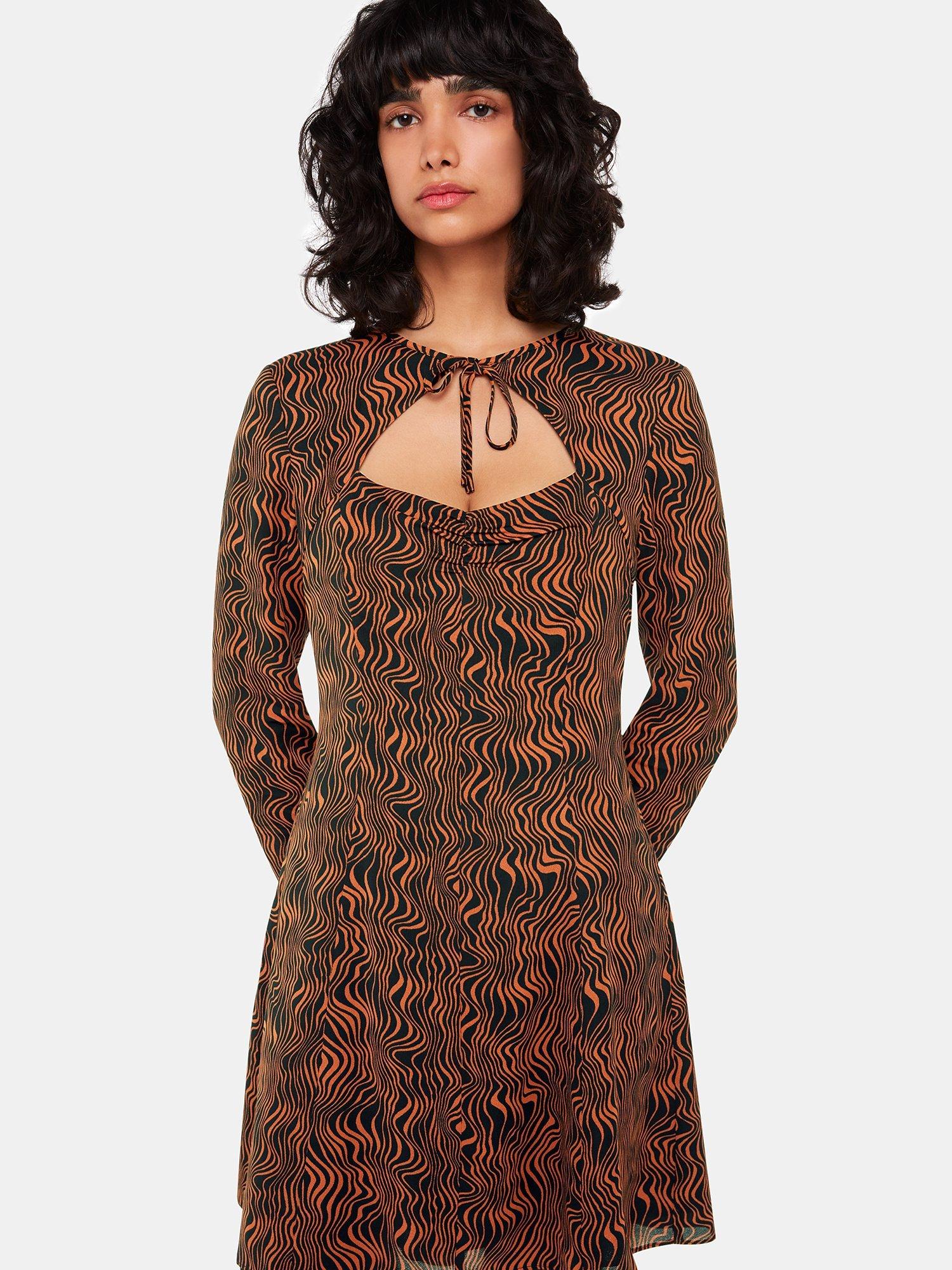 A tried-and-true favourite, this thigh-grazing dress from Whistles is crafted from an airy viscose fabric. Charming with a sweetheart neckline and full-length sleeves, this style is splattered with an abstract print.