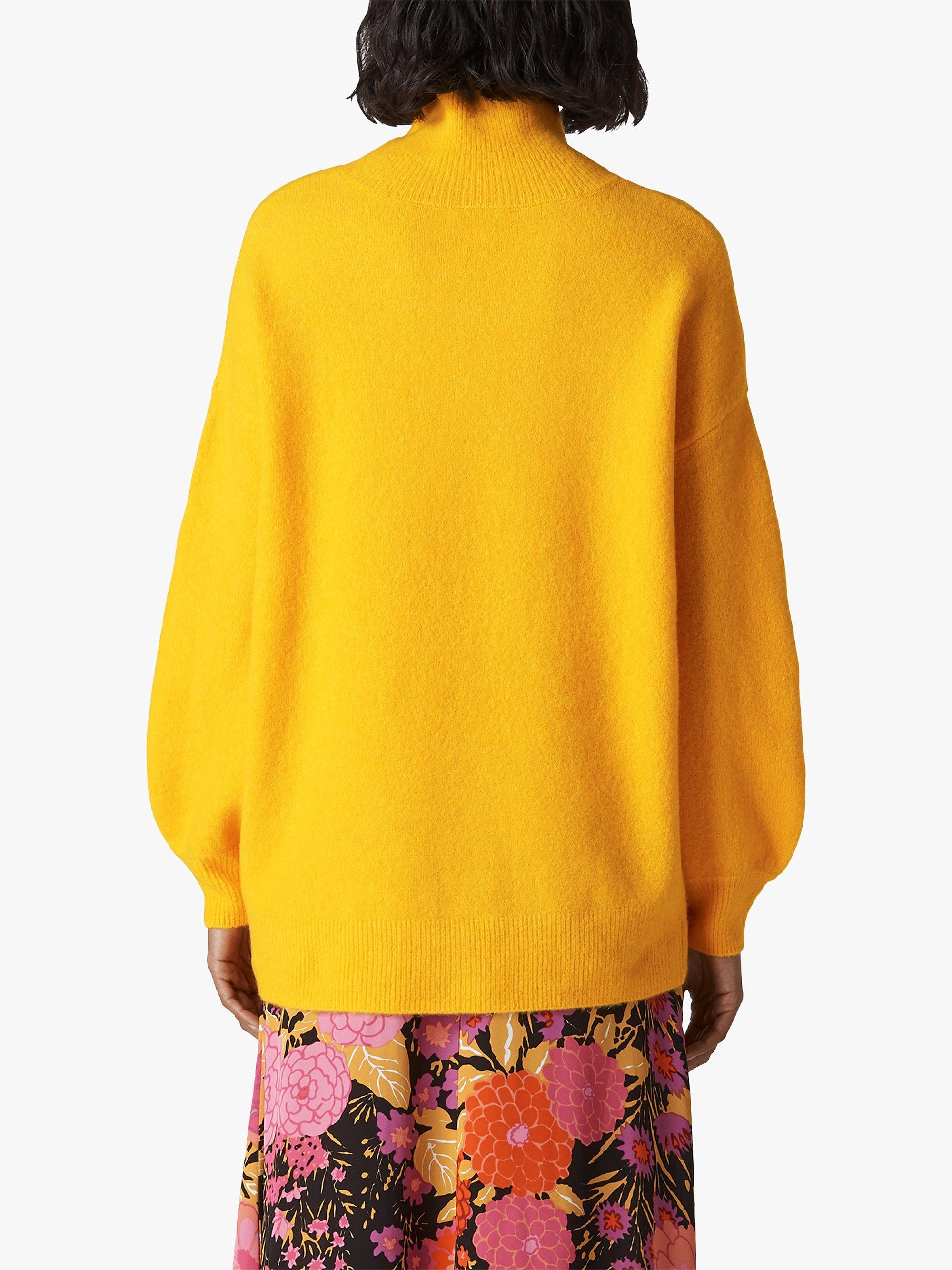 This design is spun from a soft wool blend in a feminine hue. It has an oversized silhouette and a cosy funnel neckline, making it easy to layer on particularly cold days. Wear with signature jeans and western boots during the week, or trainers and a modern backpack on weekends.