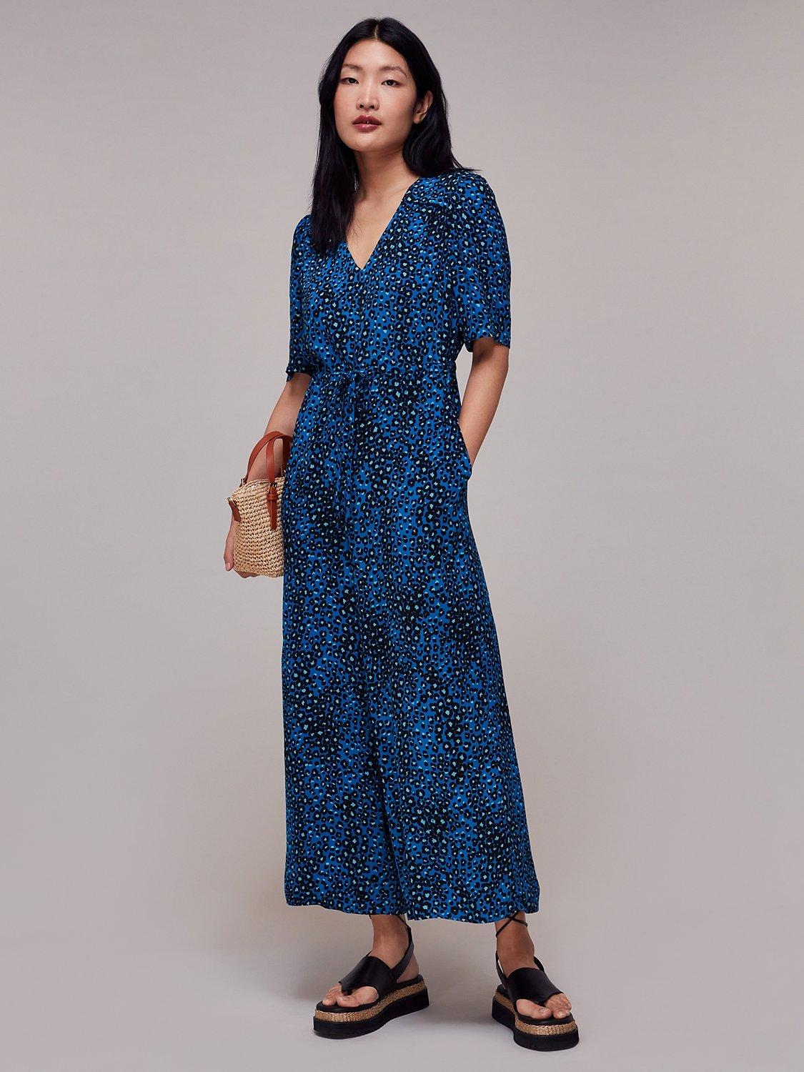Framed with a flattering v-neck and elbow length sleeves, this jumpsuit by Whistles is cut to a wide-leg silhouette and is made from smooth viscose.