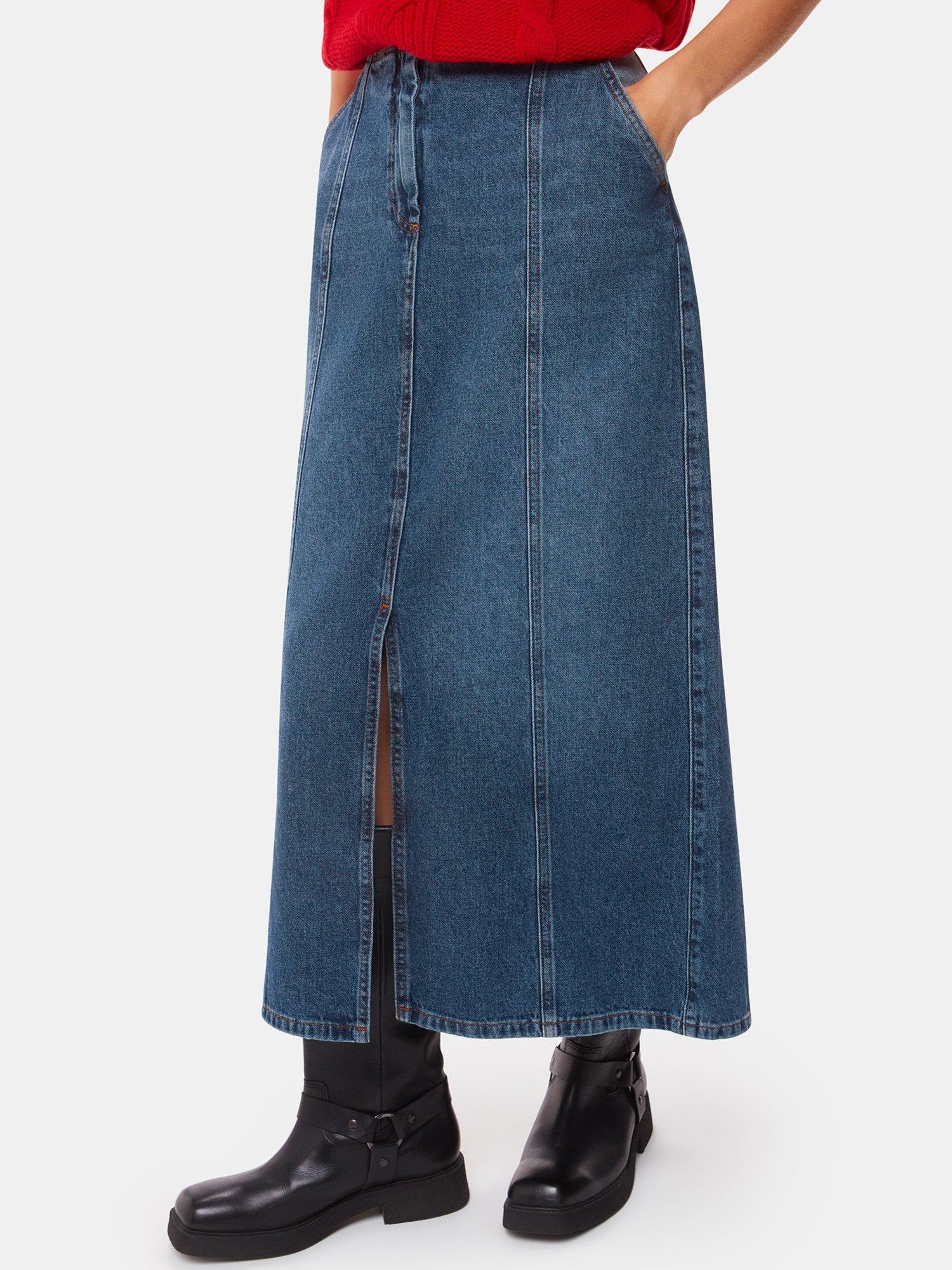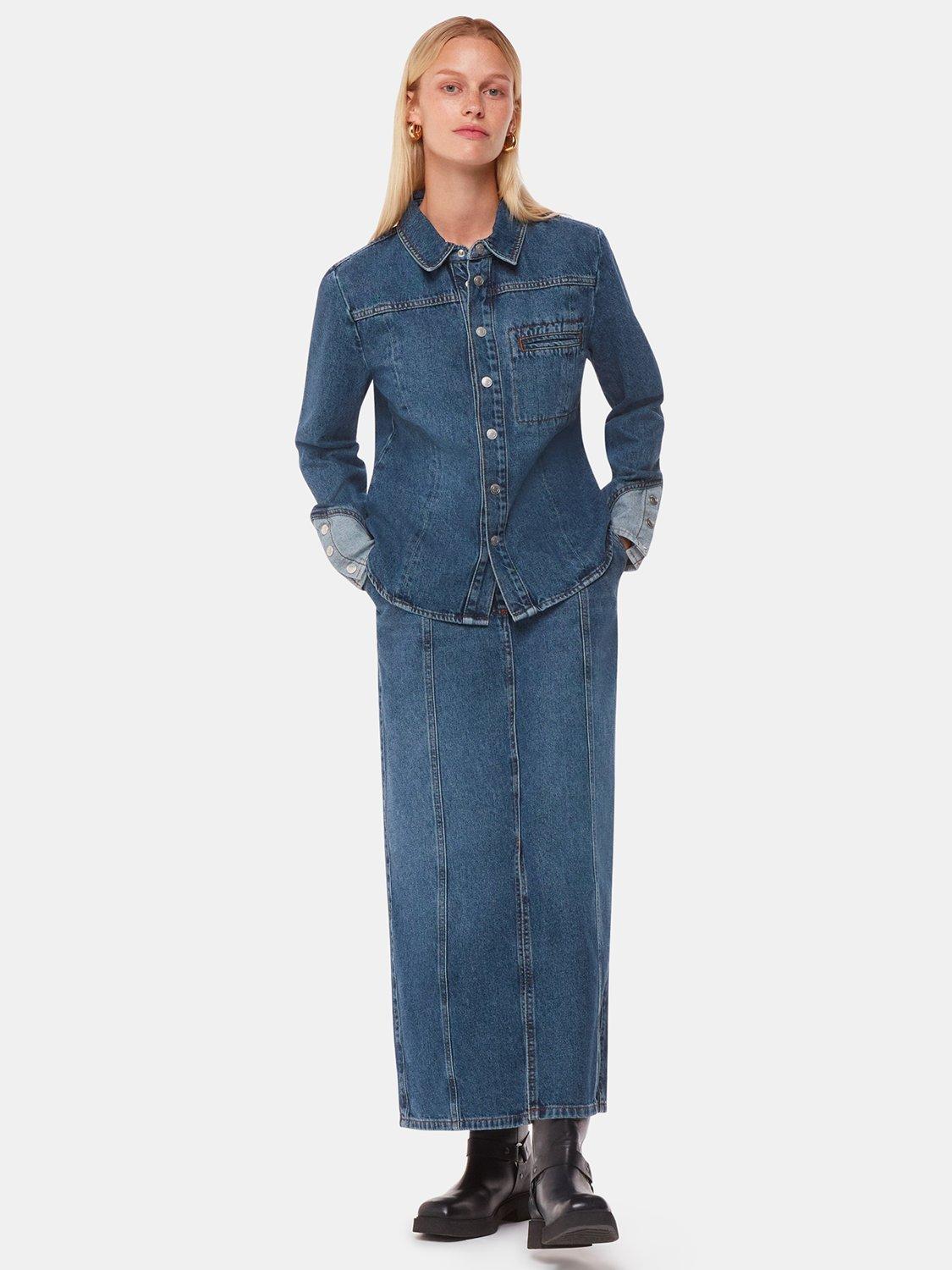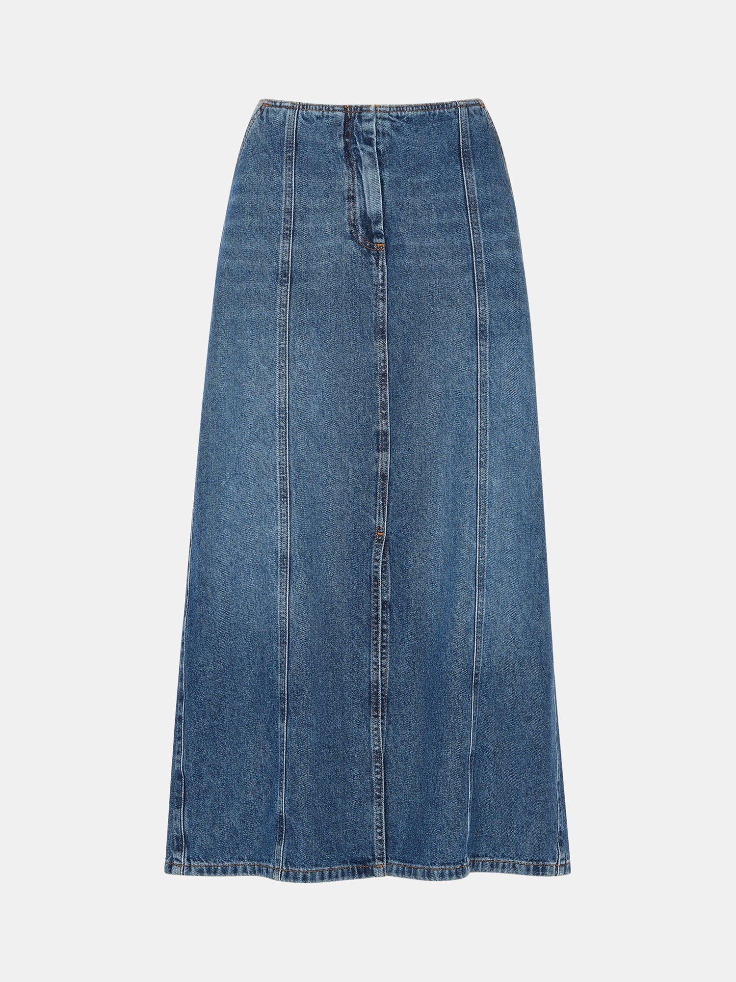 In an endlessly wearable A-line shape, this high-waisted midi skirt by Whistles is rendered in denim with a patchwork print.