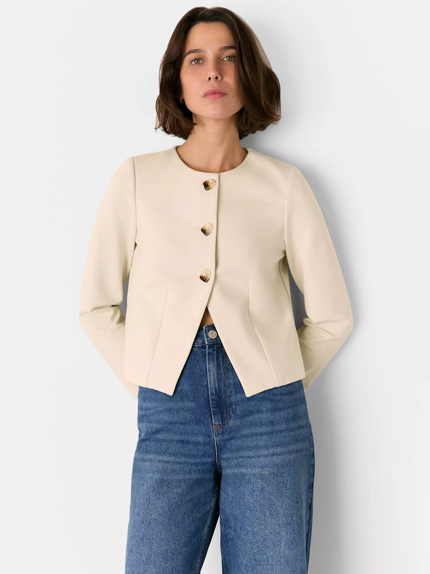 An elegant layering piece for smart events, this blazer by Whistles sits at the hips for practical coverage.
