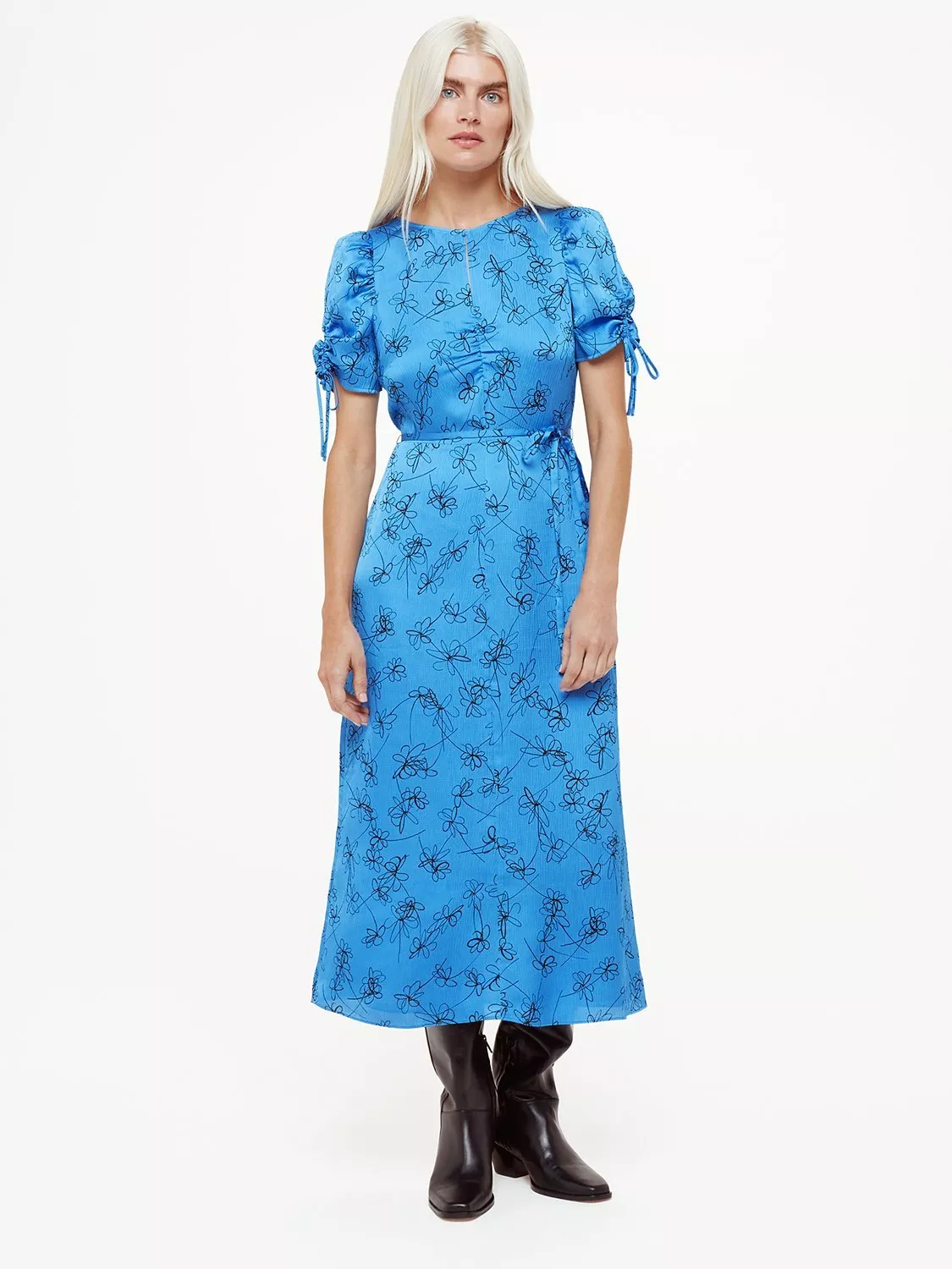 Flattering in all the right places, this midi dress from Whistles is made using a blend of fabrics that you'll stay comfortable in throughout the day. Featuring a round neckline and short sleeves with tie cuffs, it blooms with joy through a refreshing scribble daisy print.