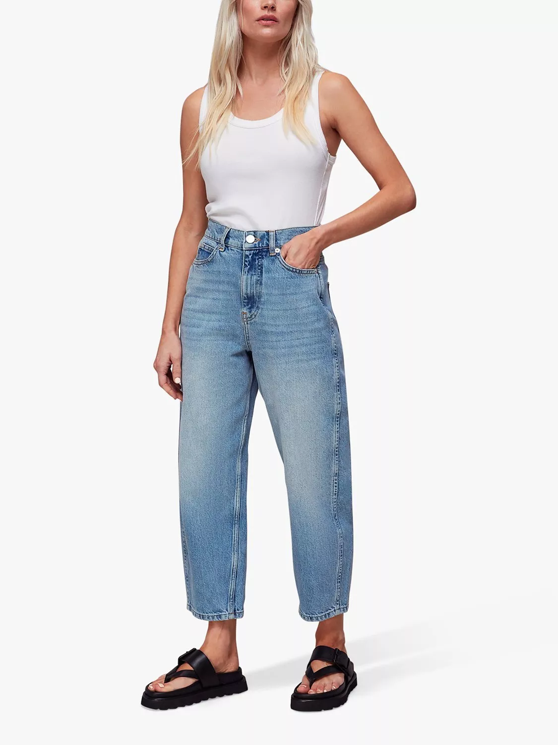 Falling to a flared, wide-leg fit, these high-waisted jeans by Whistles have a pure cotton construction and fall to a regular length.