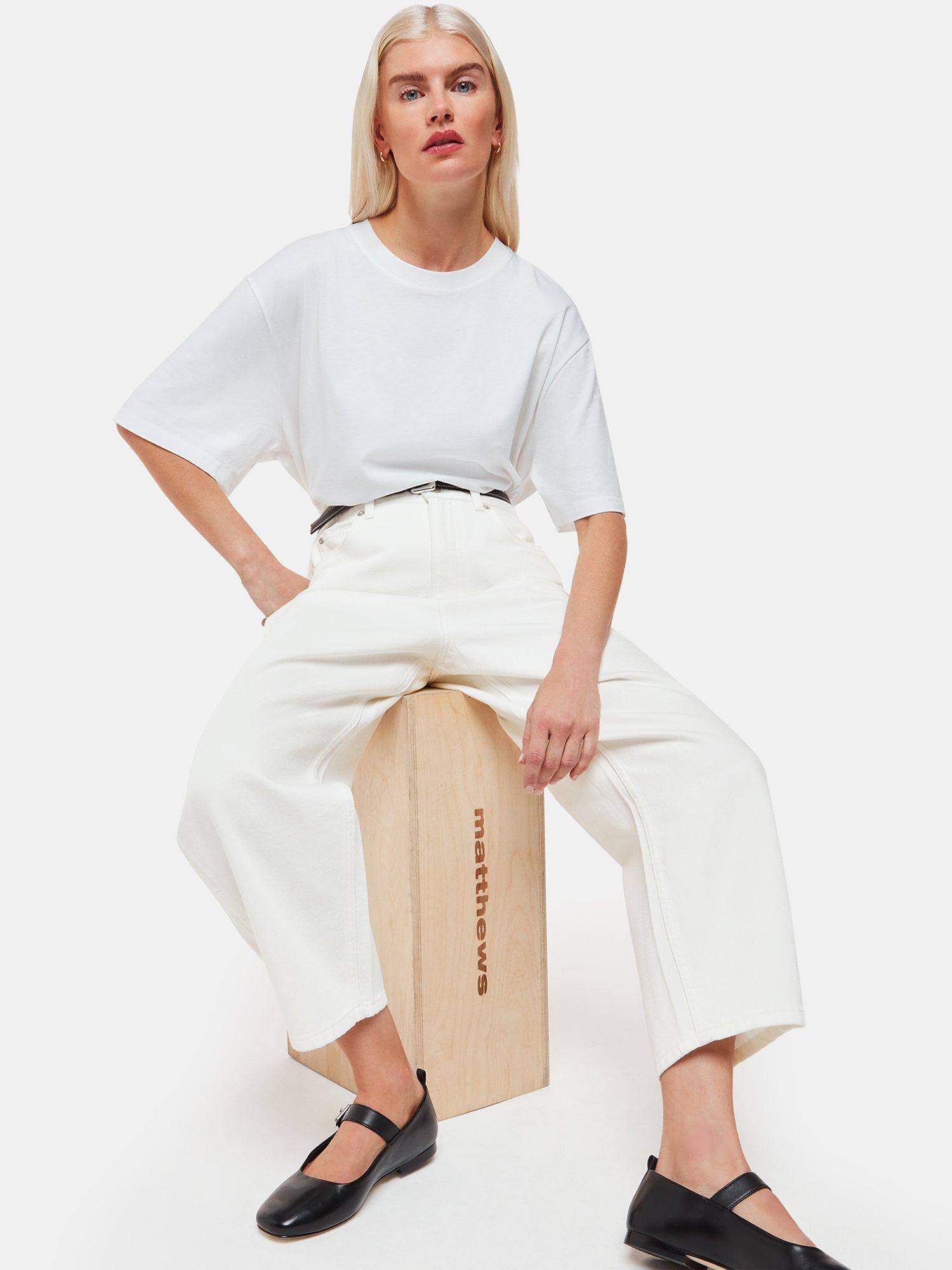 Falling to a flared, wide-leg fit, these high-waisted jeans by Whistles have a pure cotton construction and fall to a regular length.
