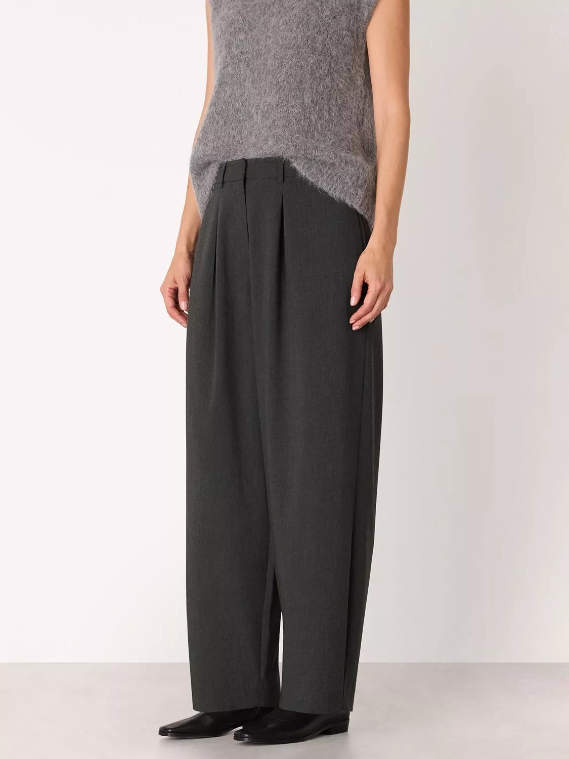 Designed for your busy days, a pair of petite barrel-leg tailored trousers from Whistles, made from a warming wool blend. High-rise comfort and practical fastenings offer a smart look, with hems that fall to a regular length.