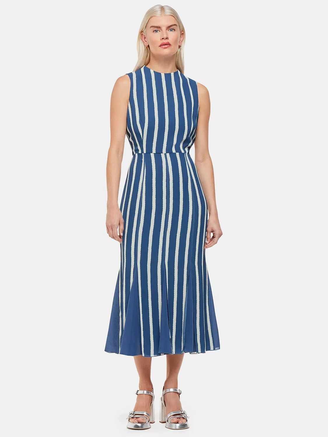 Falling into decidedly delicate pleats, this midi dress from Whistles is crafted from an airy viscose fabric. Featuring a round neckline, this style redefines your collection with simple stripes.