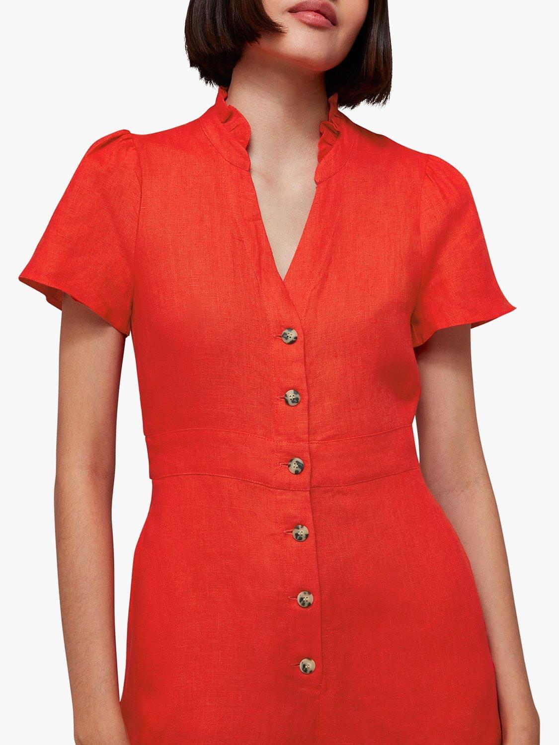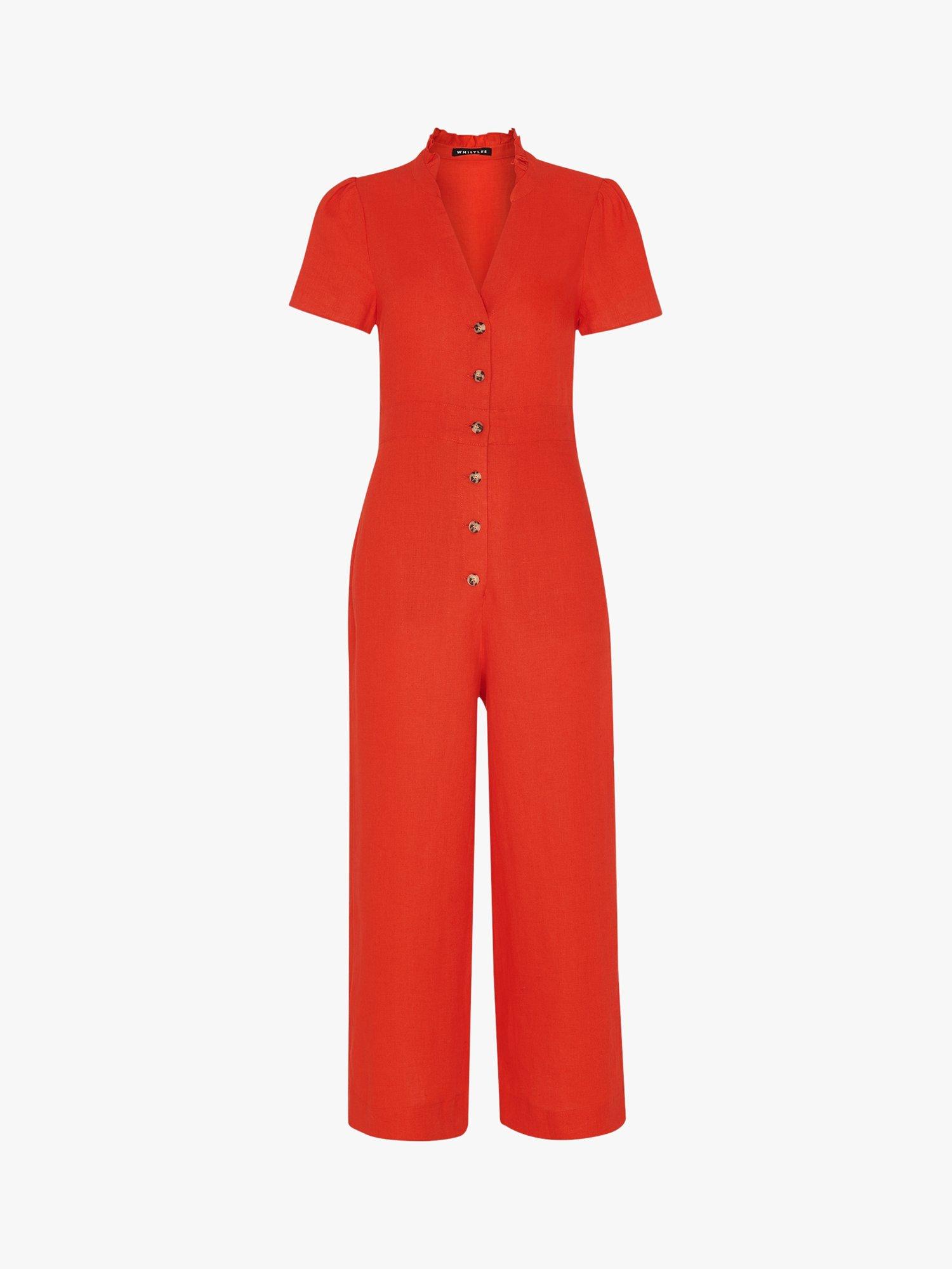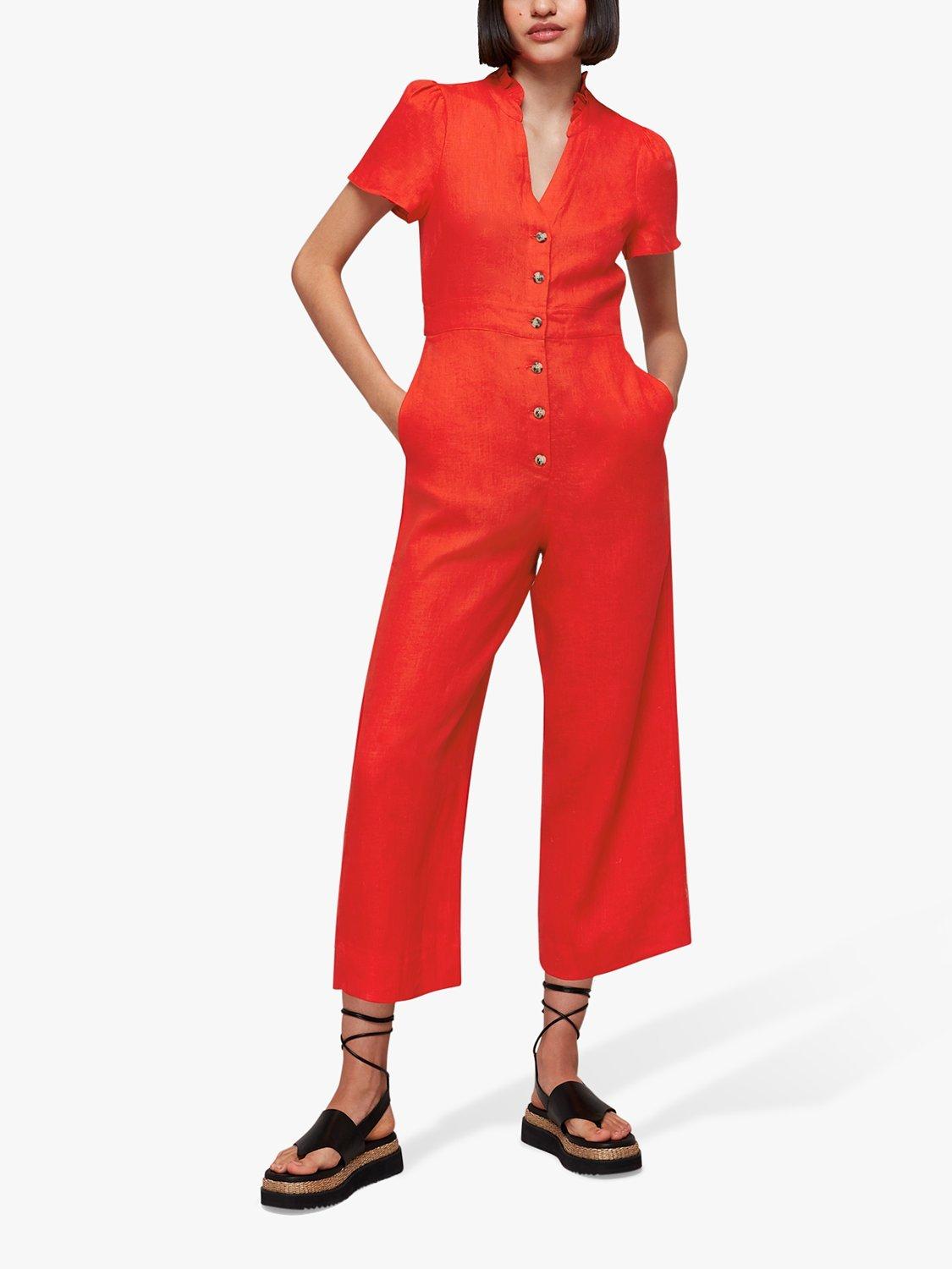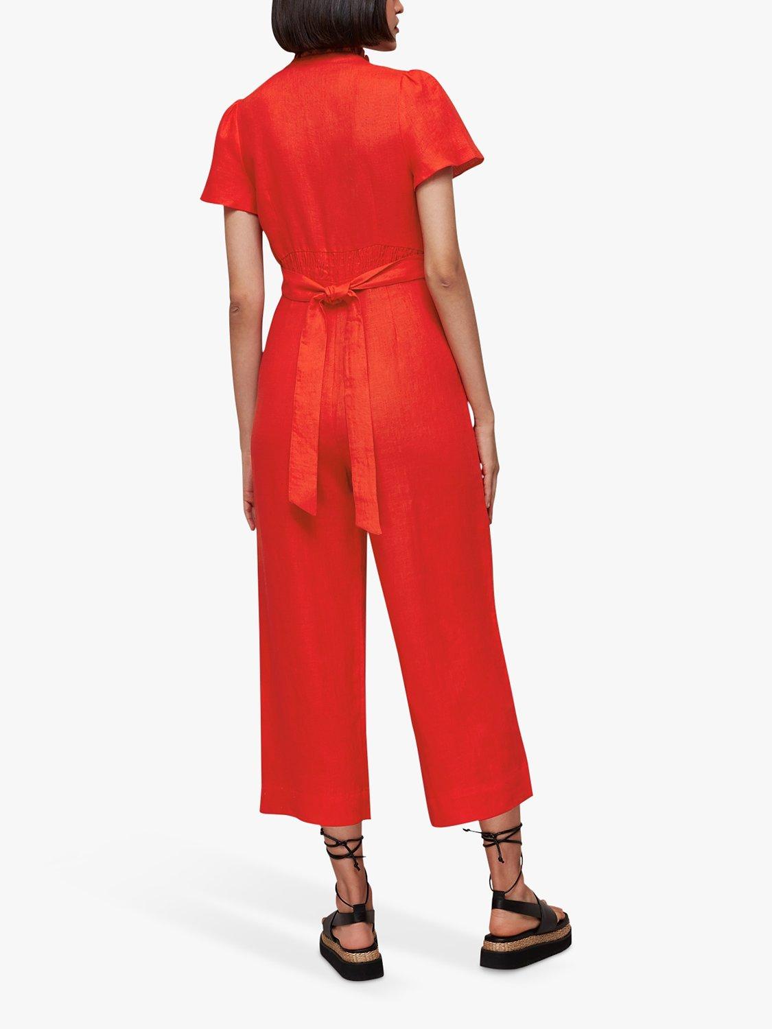 Framed with a flattering v-neck and short sleeves, this jumpsuit by Whistles is shaped to a tailored fit.is cast in easy-breezy linen for light and breathable wear.