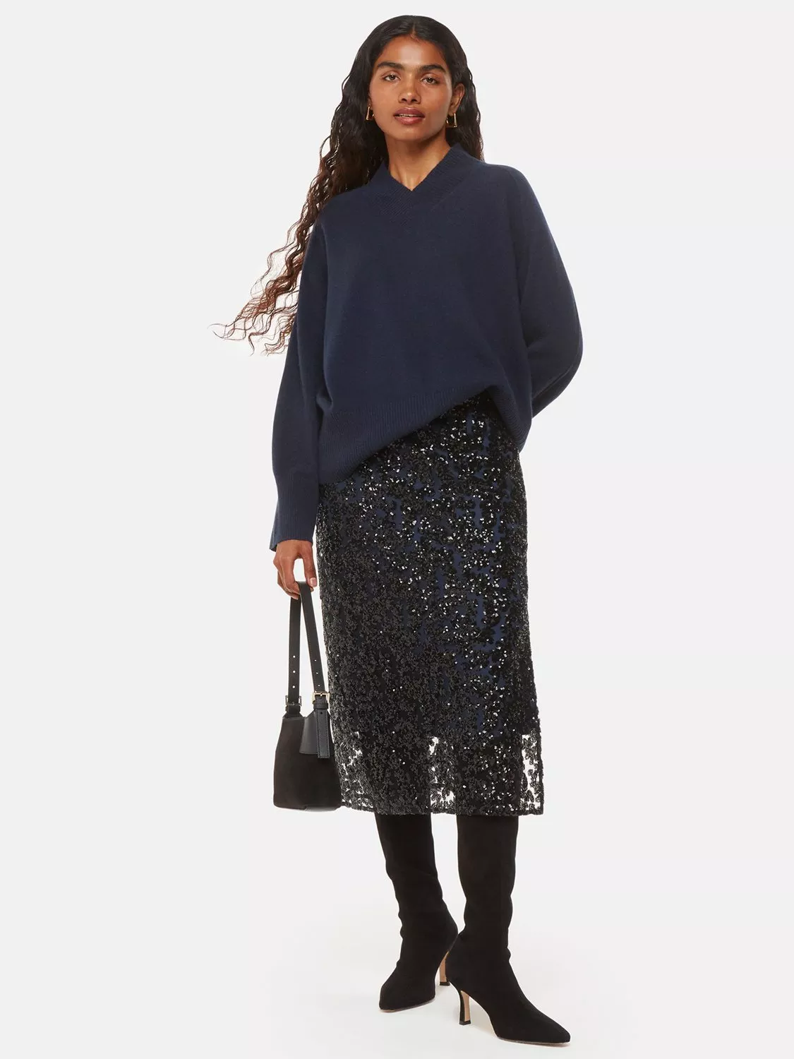 Shaped to an A-line profile, this petite midi skirt from Whistles is planted with flourishing florals.