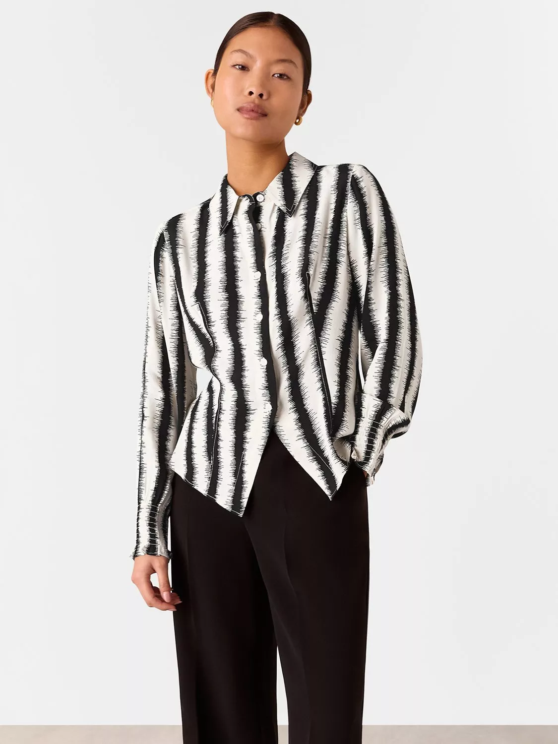 Refreshing your roster, this fitted shirt from Whistles is printed with hazy stripes throughout. Framed with a collar neckline and long sleeves, it is made from a light yet durable fabric and is an everyday wardrobe essential.