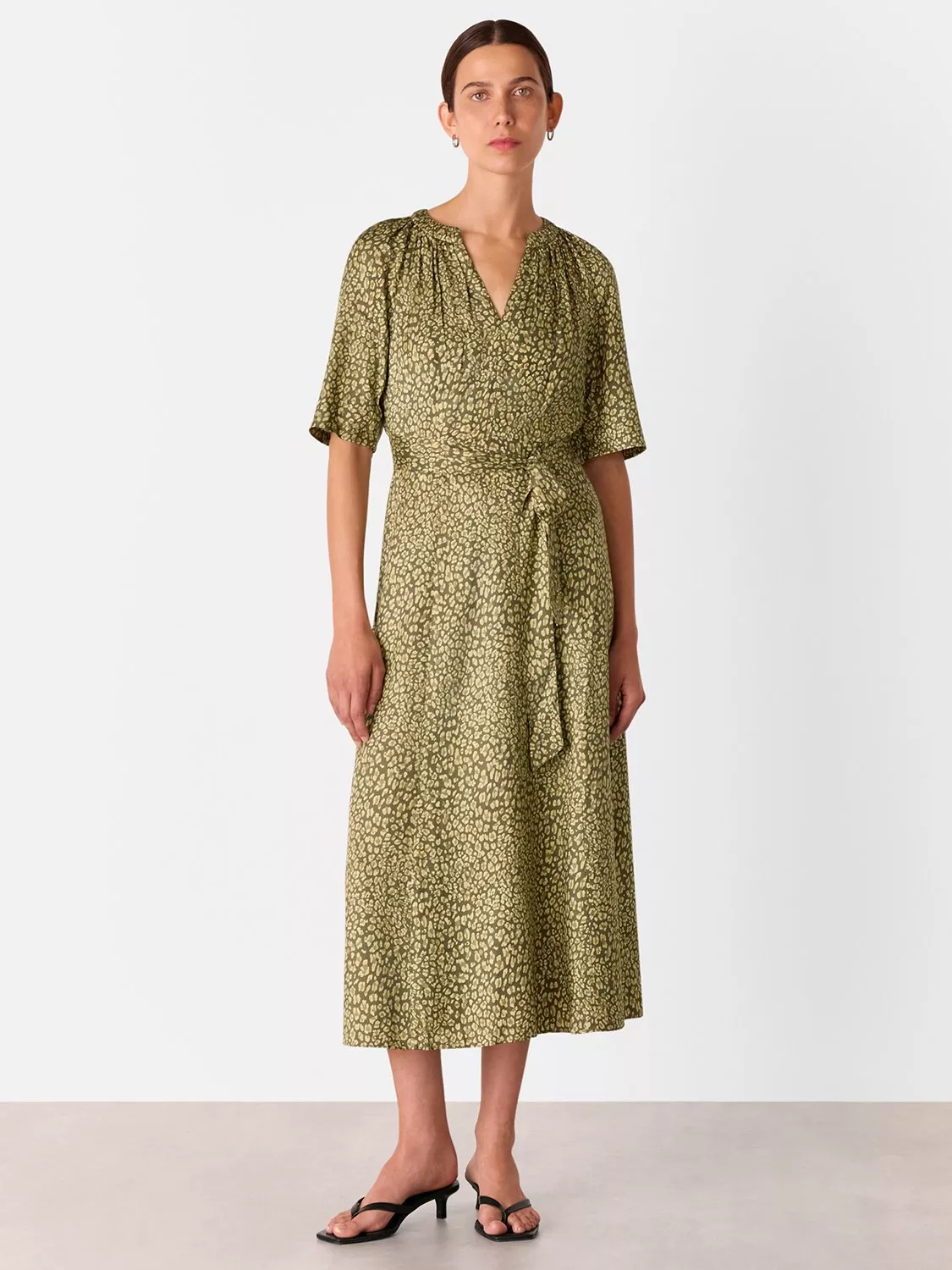 This petite A-line midi dress combines a leopard pattern with a breezy V-neck and short sleeves, offering you comfortable movement and all-day versatility. Made with viscose, it brings both confidence and personality to your daytime plans.
