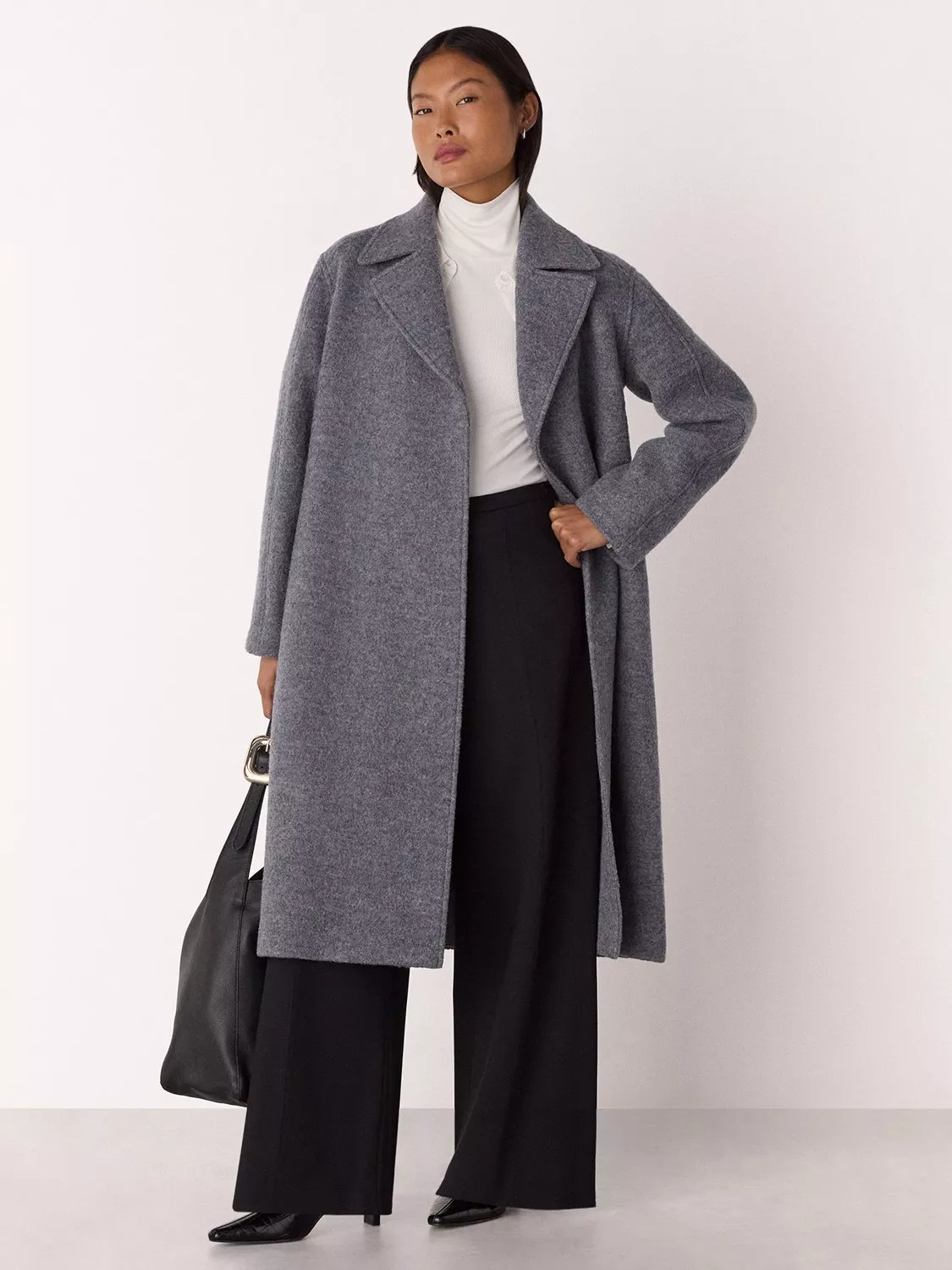 WhistlesPetite Long Belted Pure Wool Coat, Grey