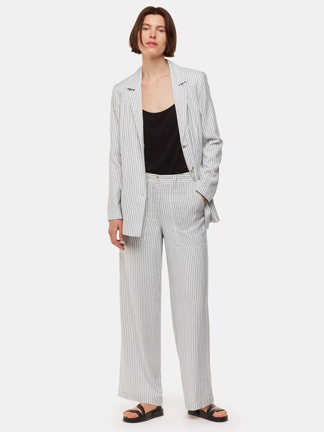 Light and fluid in a viscose fabric, they toe the line in neat stripes.