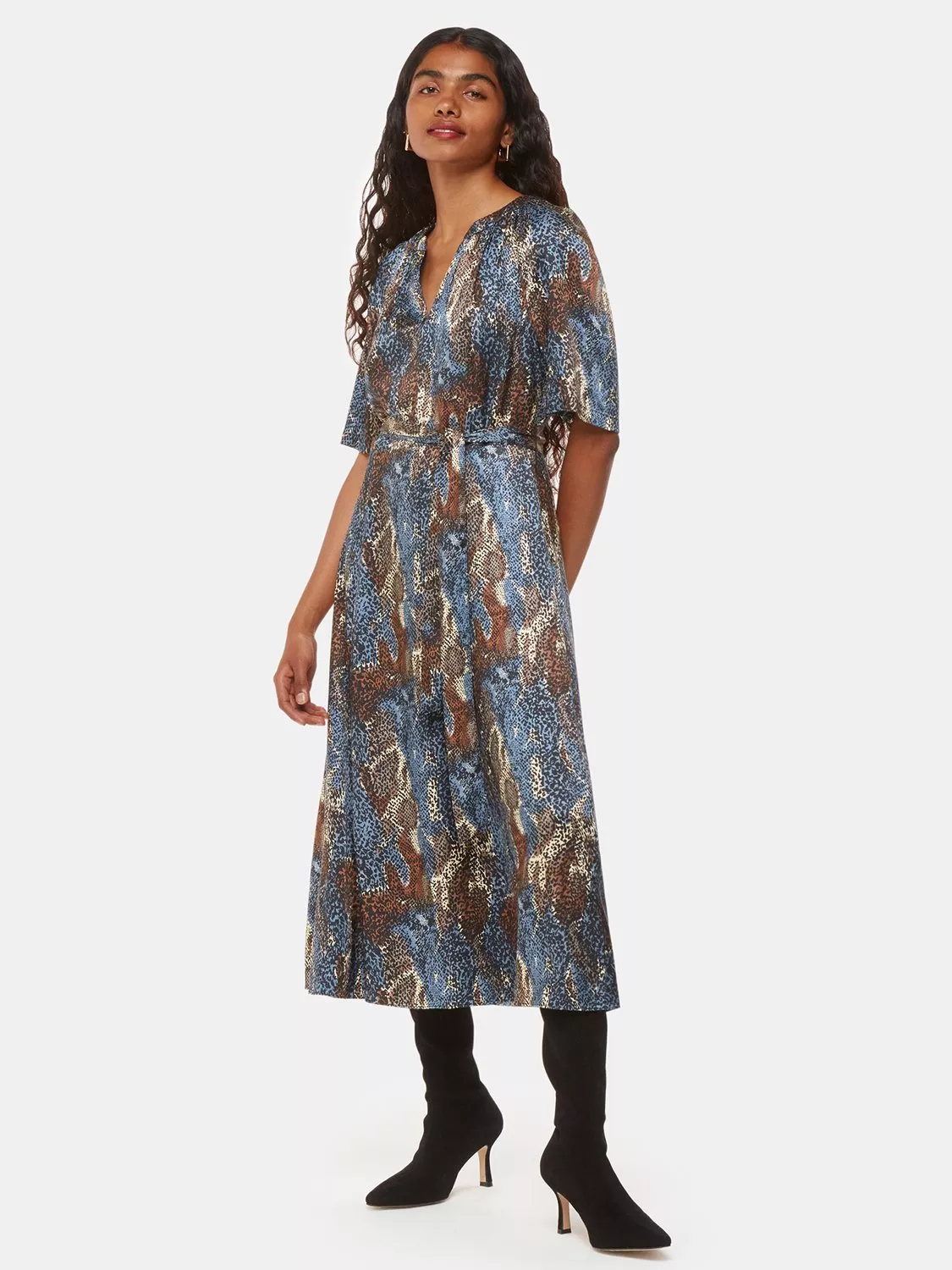 Entirely flattering with its A-line shape, this petite mid-length dress from Whistles is made from viscose that's beloved for its weightless feel. With a universally flattering v-neckline and short sleeves, this style makes a loud statement with its dashed snake print motif.