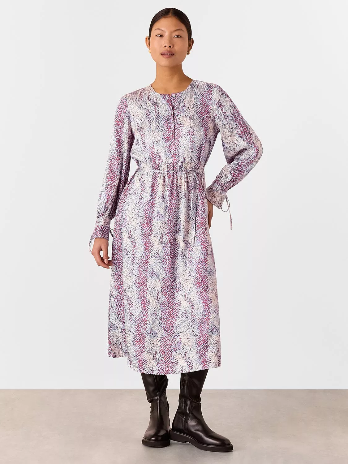 In an easy to wear A-line shape, this petite midi dress from Whistles is made from whisper-weight viscose. Keeping things simple with a round neckline and long sleeves, it receives a loud update with its mottled snake print.
