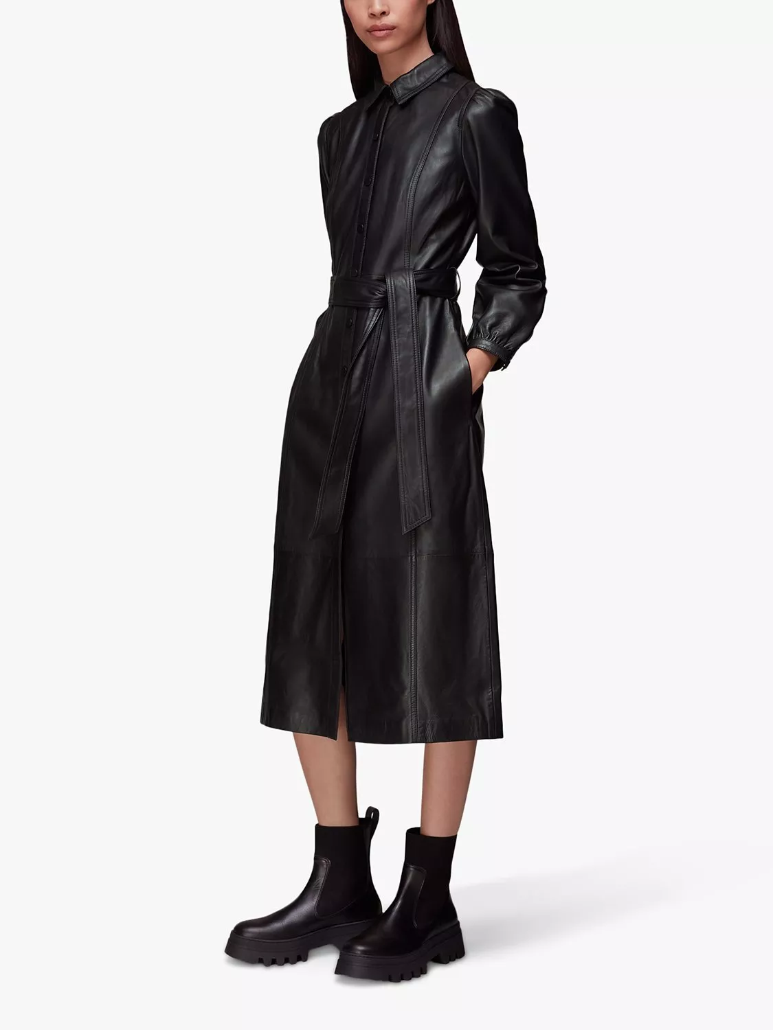 In an A-line shirt style that you will wear again and again, this midi dress by Whistles is in need of no fussy details or prints to catch the eye.