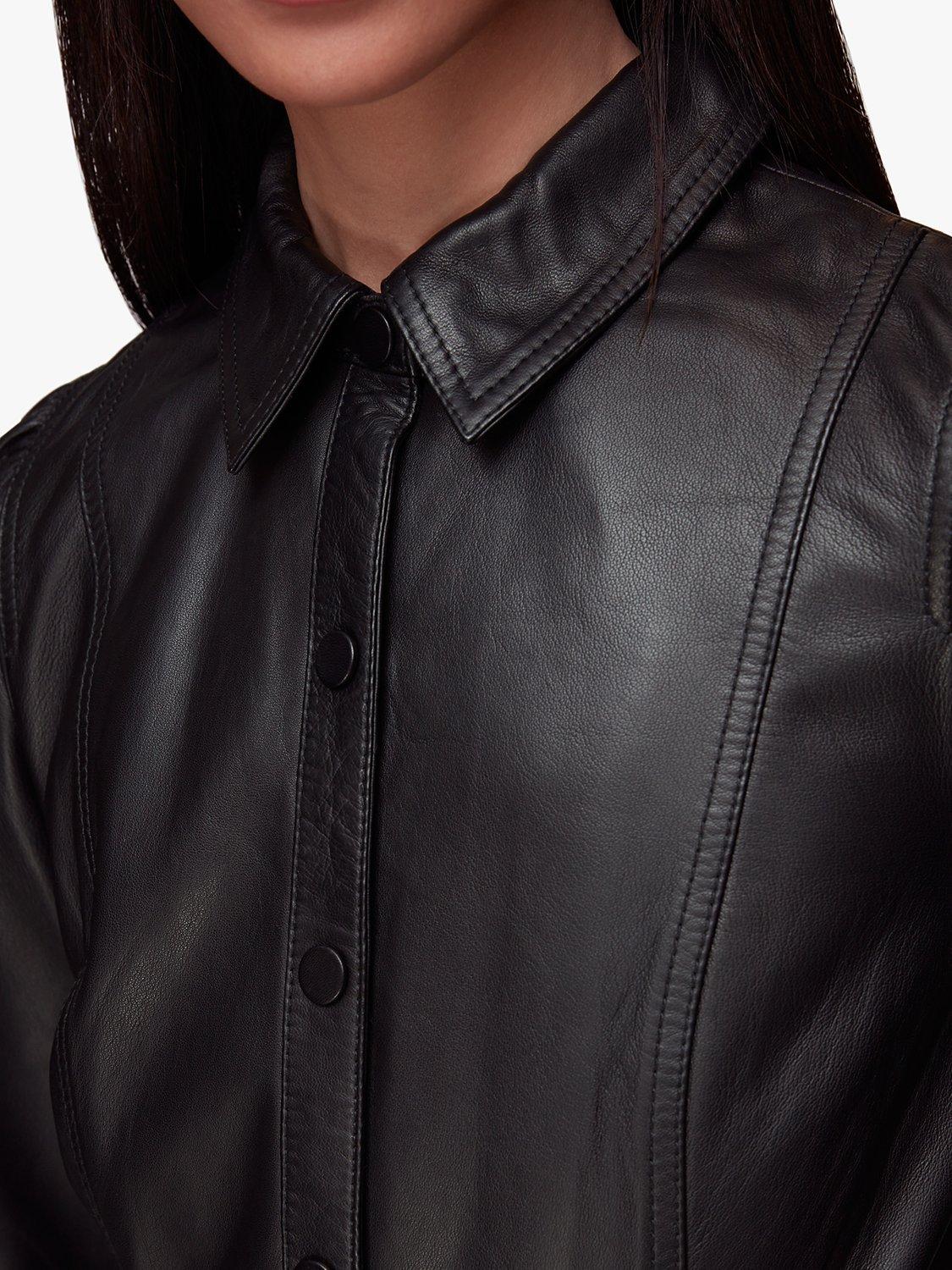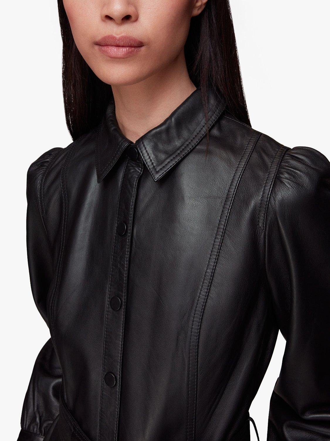 Smartening your look with its collared neckline and puff sleeves, it is cut from pure leather for a premium feel and is a care-free option for daytime dressing.