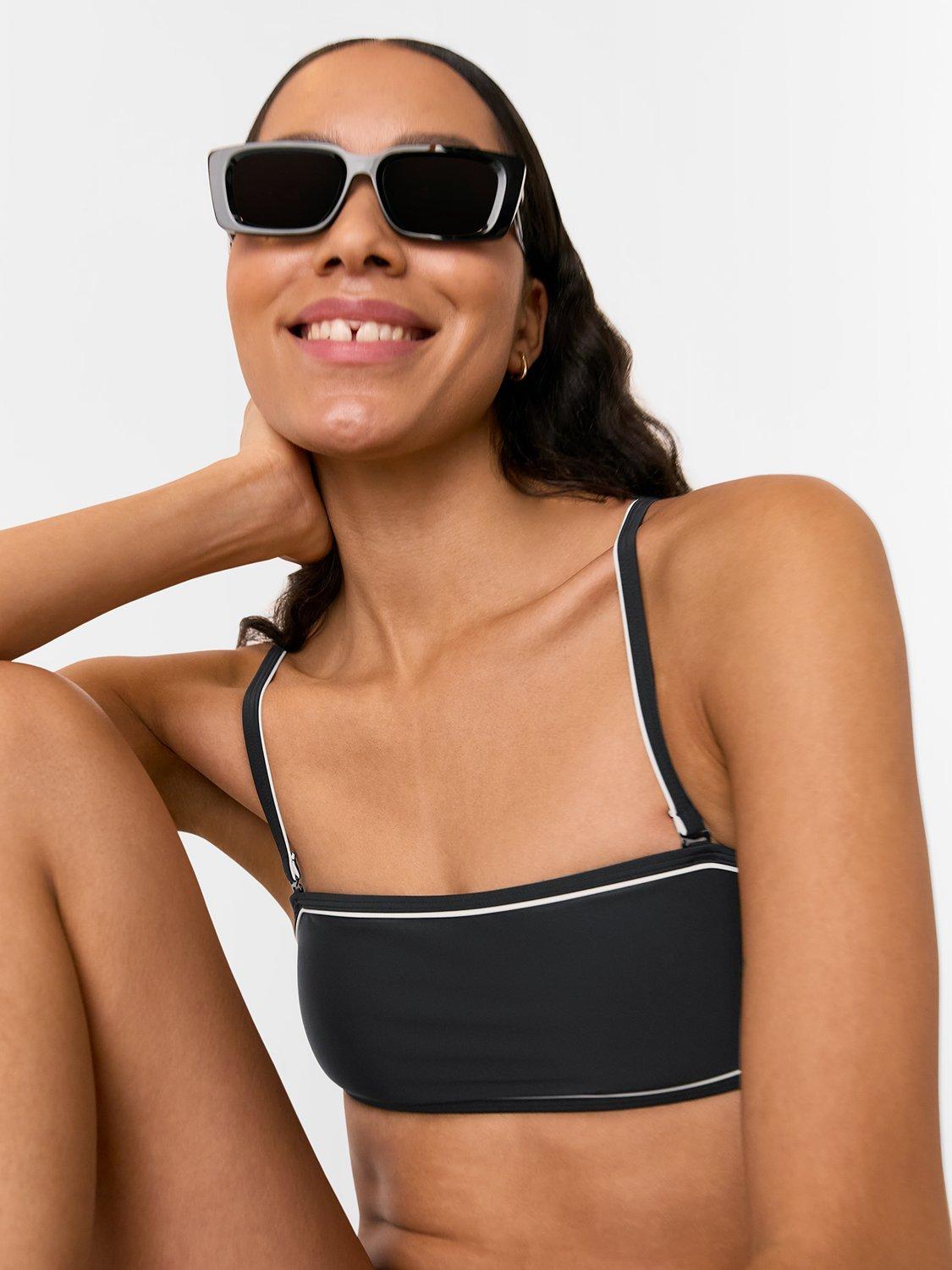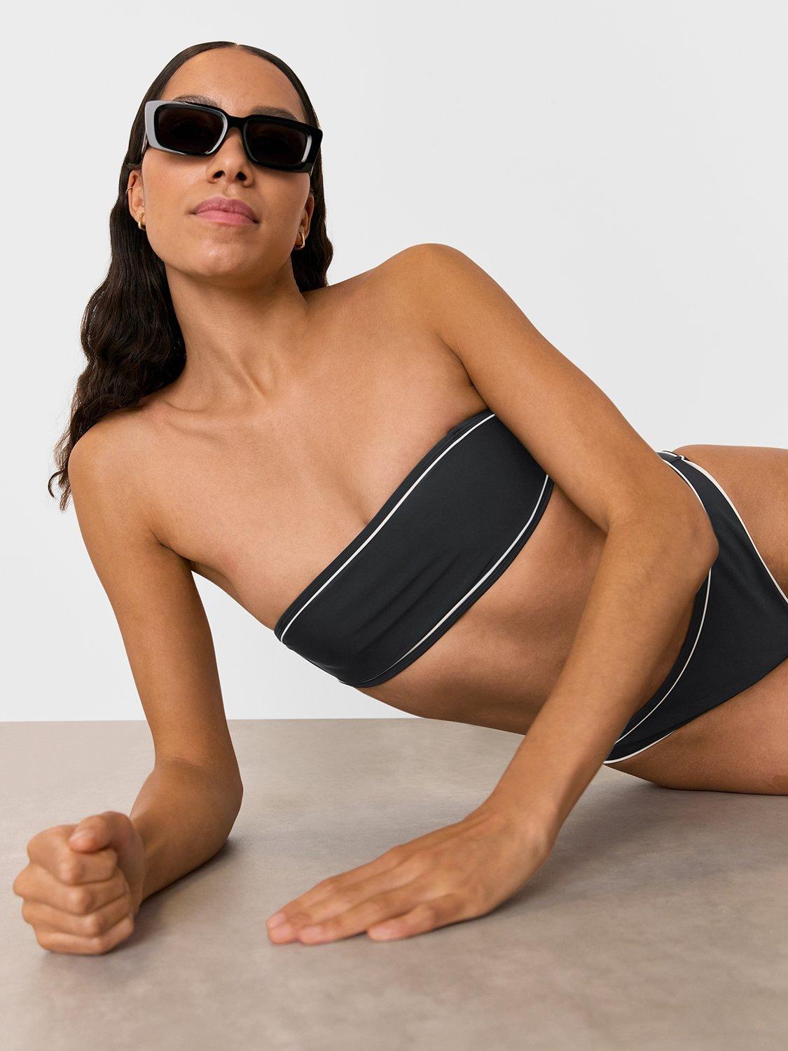 Getting you ready for a splash in no time, this contrast piped bandeau bikini top from Whistles is designed with adjustable and removable straps. Don with the matching bikini bottoms.