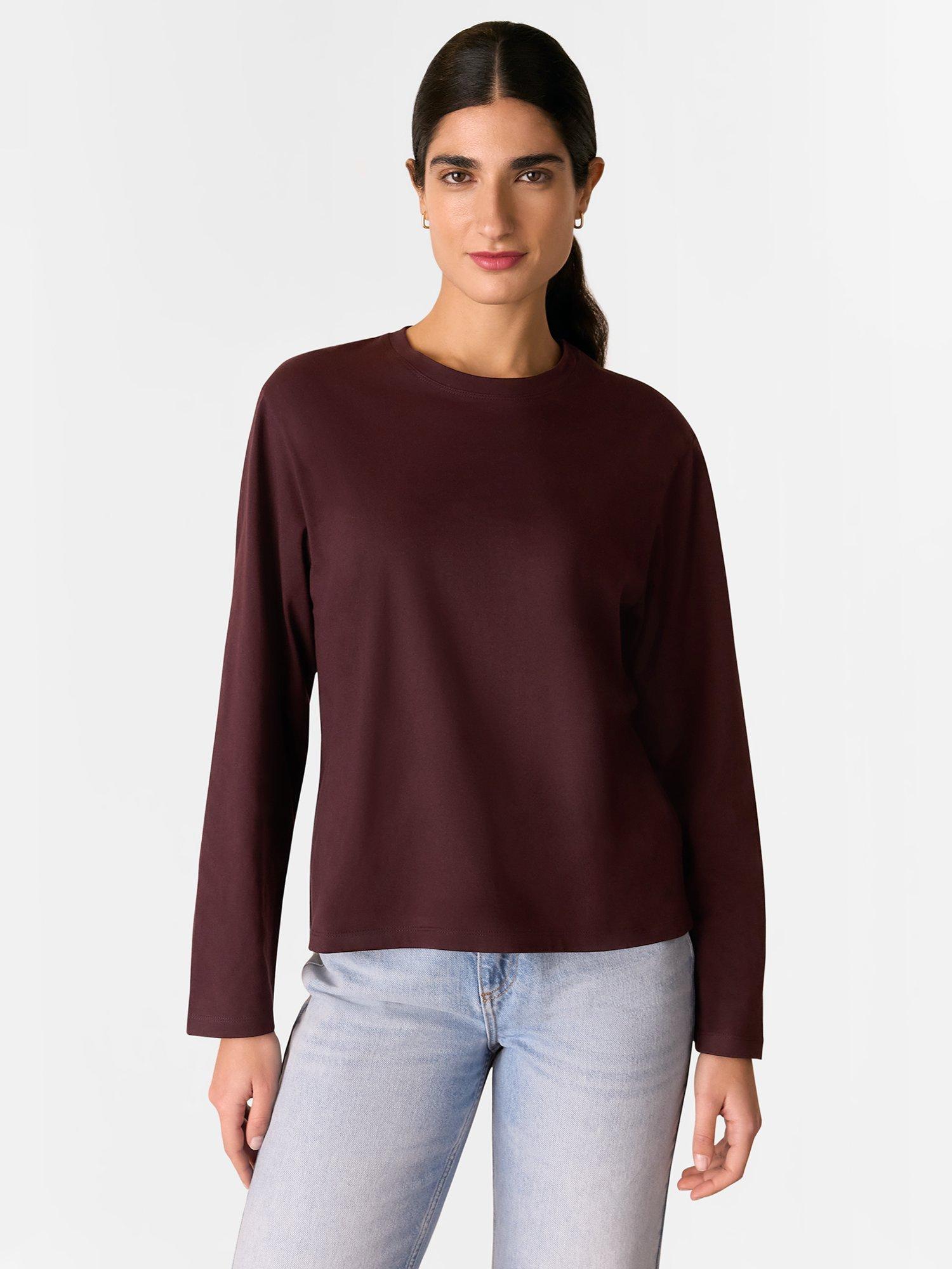WhistlesRelaxed Long Sleeve Top, Burgundy
