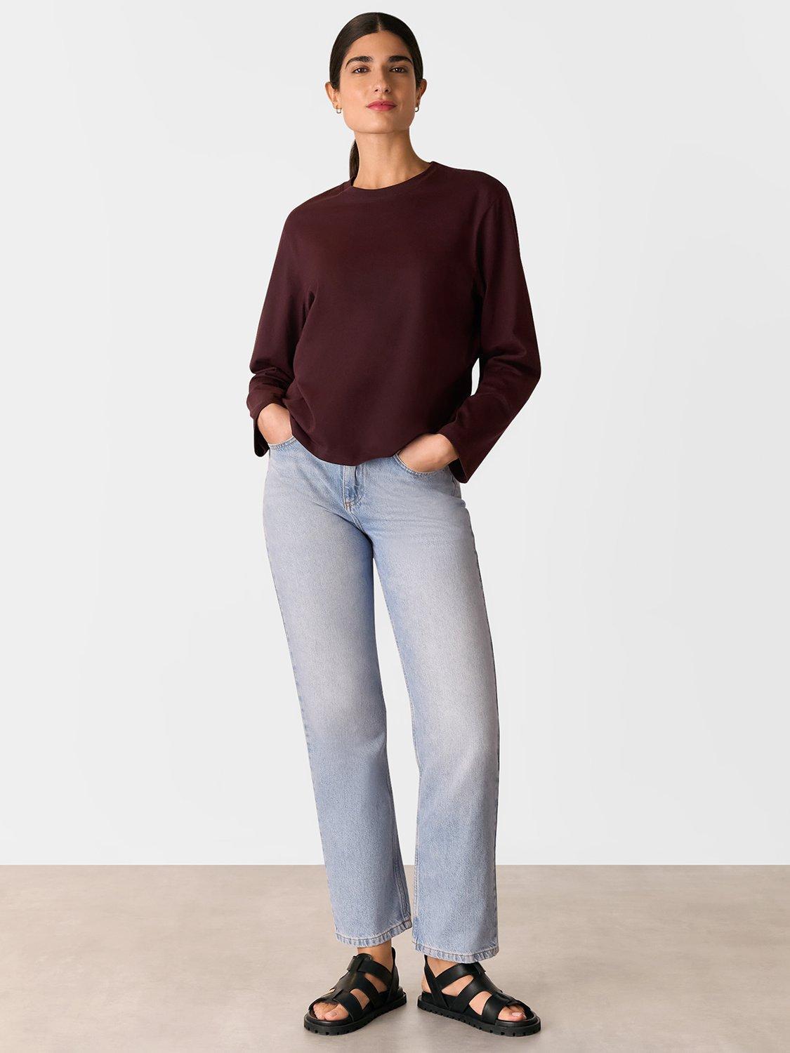 A casual wardrobe staple, this relaxed top from Whistles is plain for easy mixing and matching. With a classic crew neck and long sleeves, it's made from soft and breathable cotton.